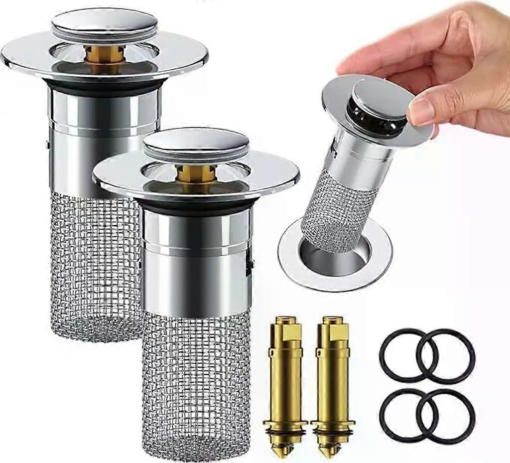 Set of 2 sink plugs with hair catcher, pop-up drain filter made of stainless steel with removable filter basket, ideal for sinks as a replacement.