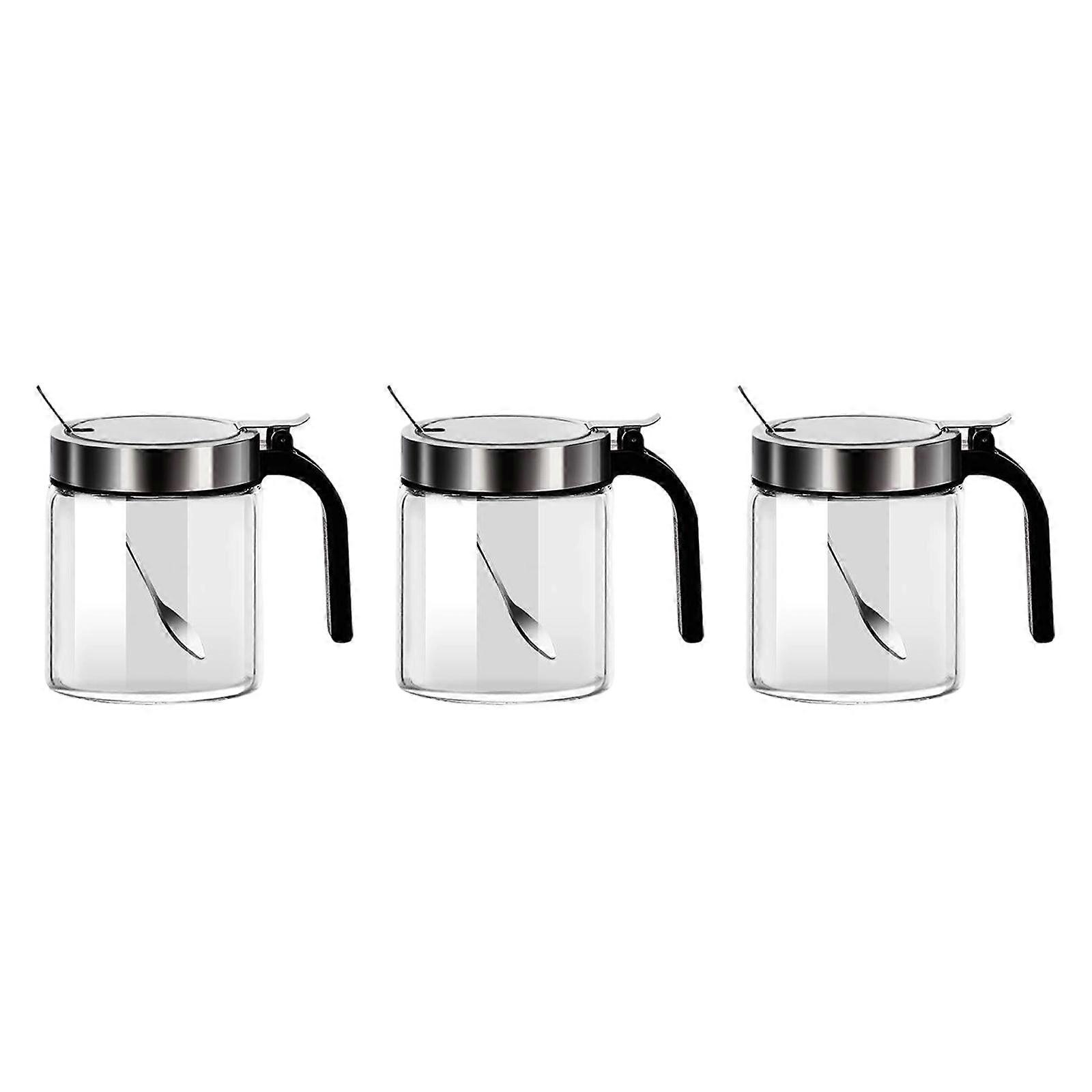 Set Of 3 Stainless Steel Condiment Jars with Tight Seal Lid And Measuring Spoons Kitchen Tool For Condiment Multicolor