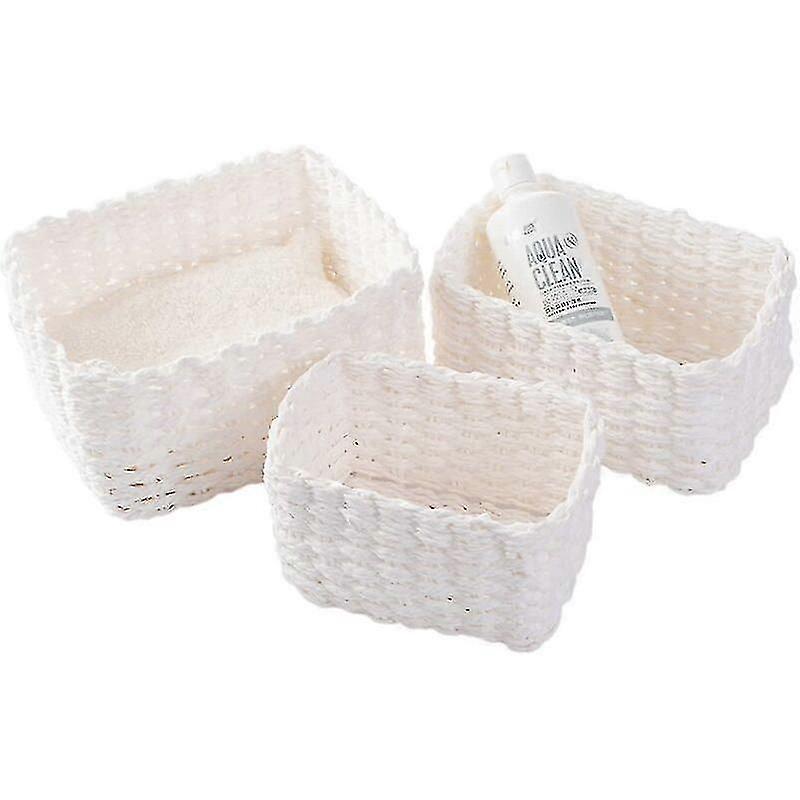Set of 3 White Braided Storage Baskets for Make-Up, Bathroom, and Small Items