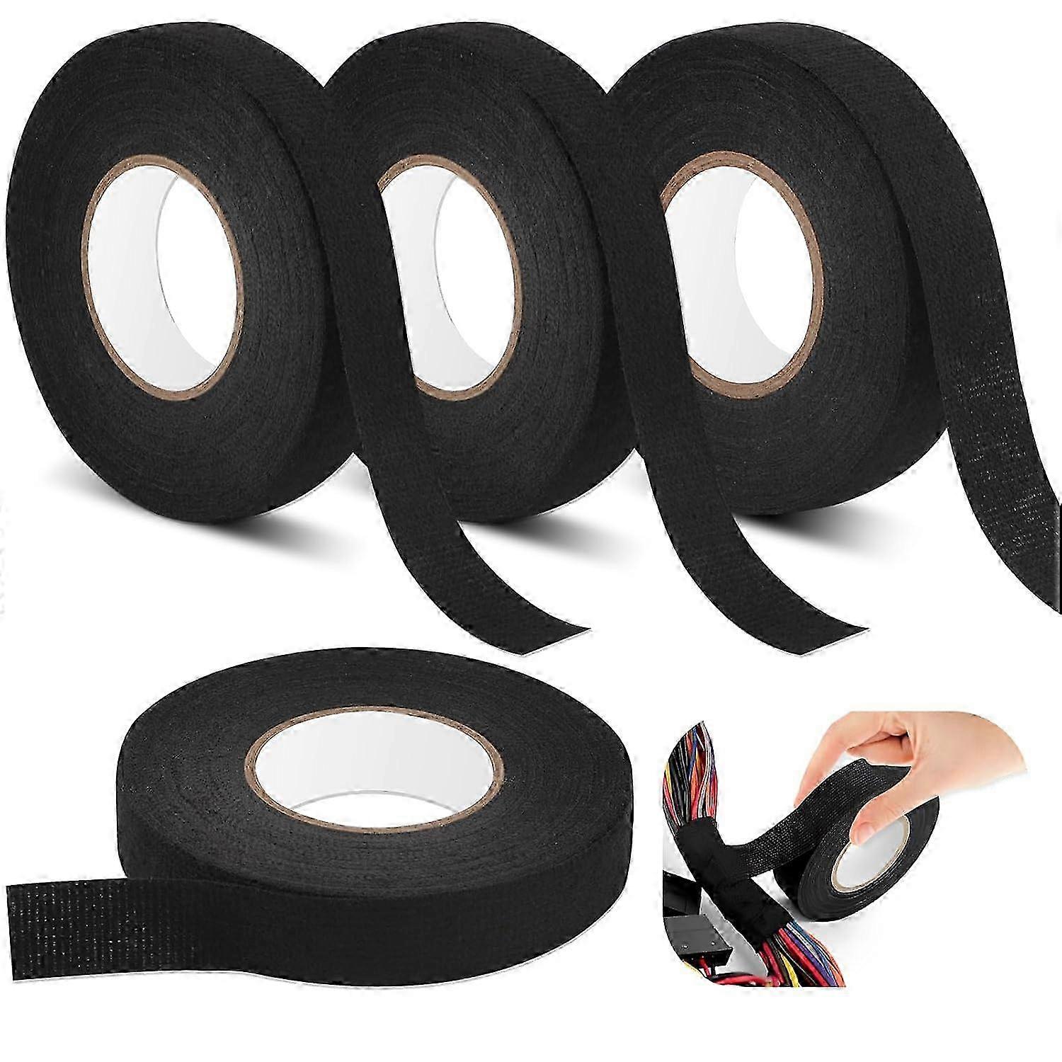 Set of 4 black cable tape heat-resistant tape 2 sizes electrically insulating tape fabric - Secure Your Cables