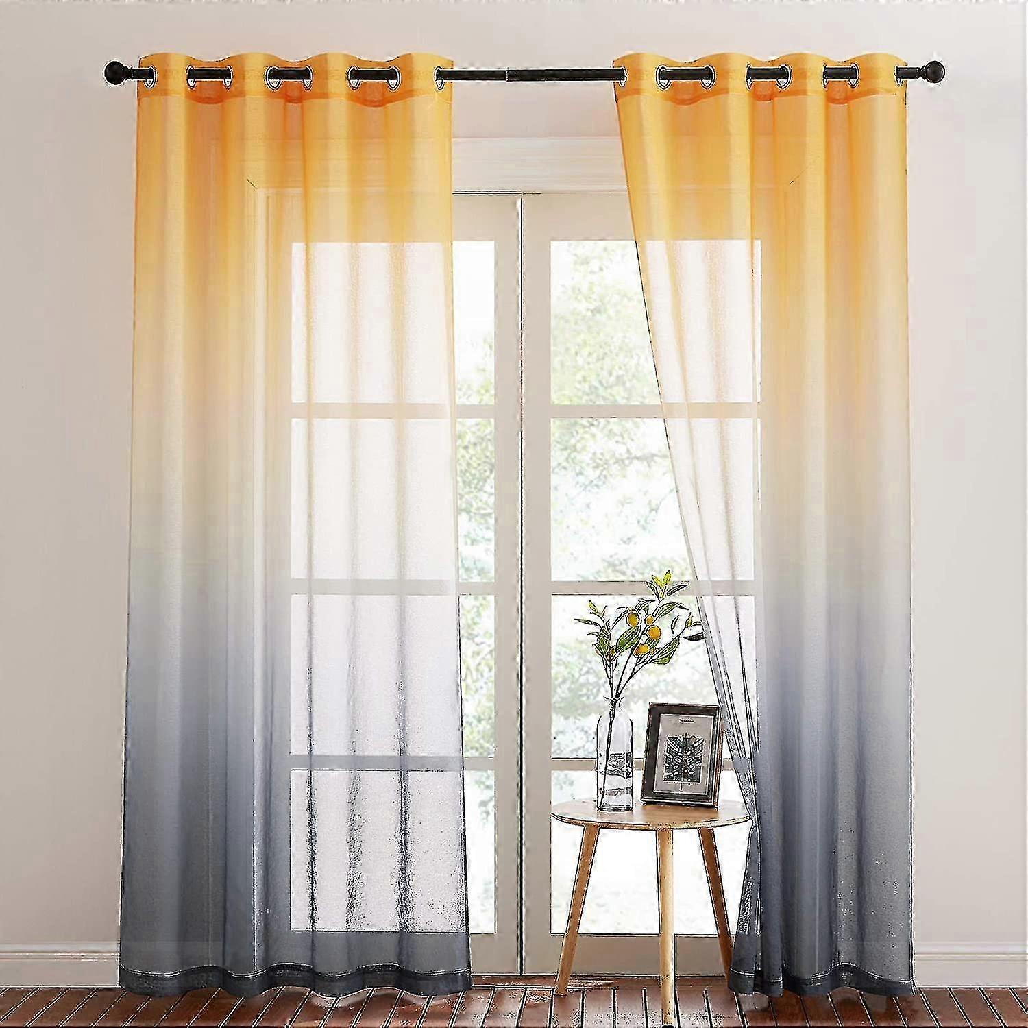 Sheer Gradient Curtains for 2024, Natural Linen Voile D��cor for Living Room, Soft Light Filtering Home Curtain