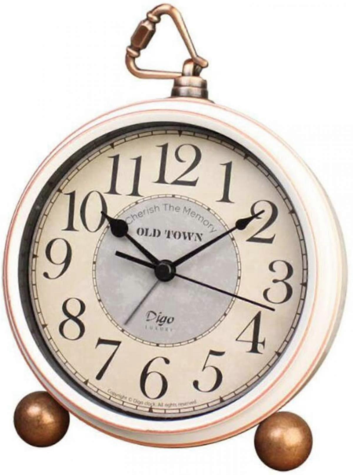 Silent Table Clock ,5.2 in Retro Vintage Non-Ticking Desk Table Clock Small Decorative Alarm Clock Battery Operated with Large Numerals and HD Glass
