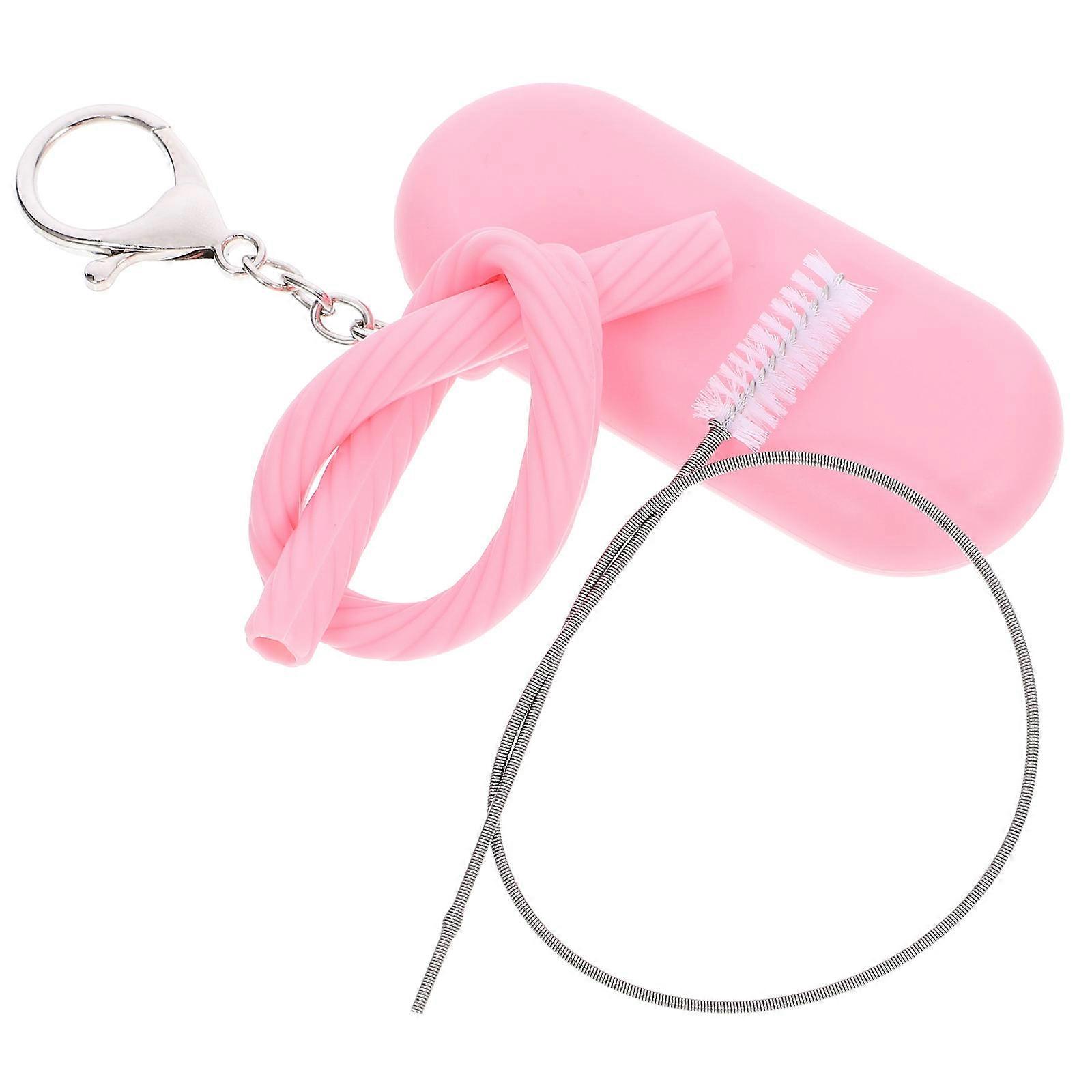 Silicone Straws Reusable Drinking Straws Set with Cleaning Tool in Pink