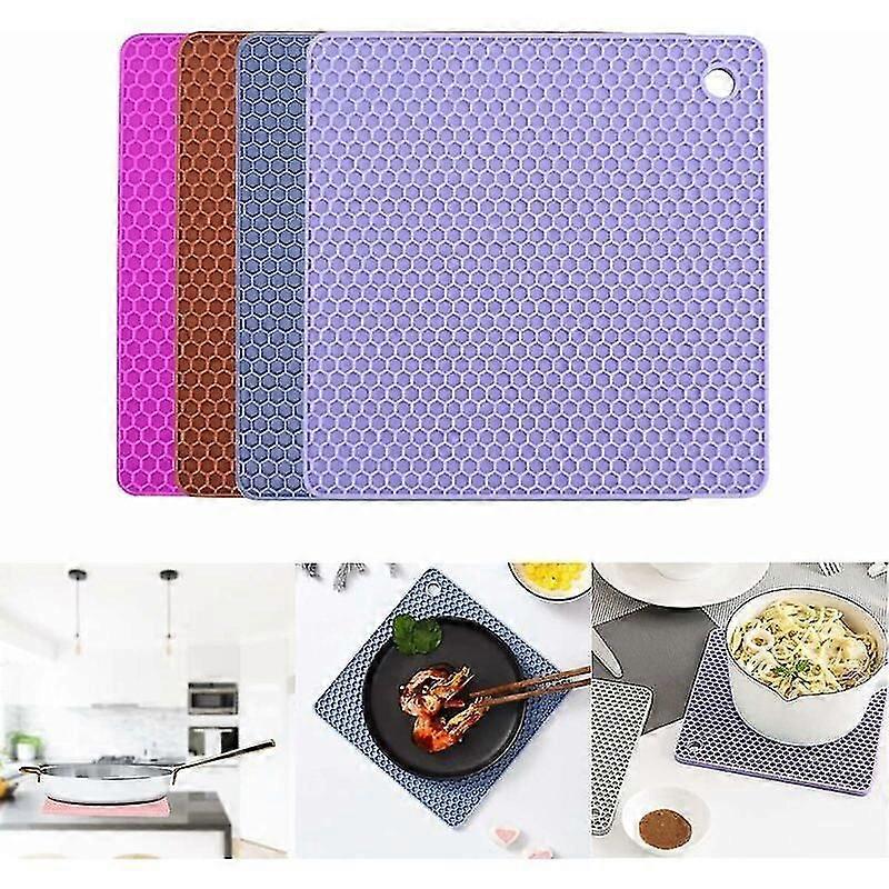 Silicone Trivets 4PCS Coasters Multifunction Table Spoon Rest Heat Resistant Kitchen Non-Slip for Dining Open Jars Square (18 X 18 CM),