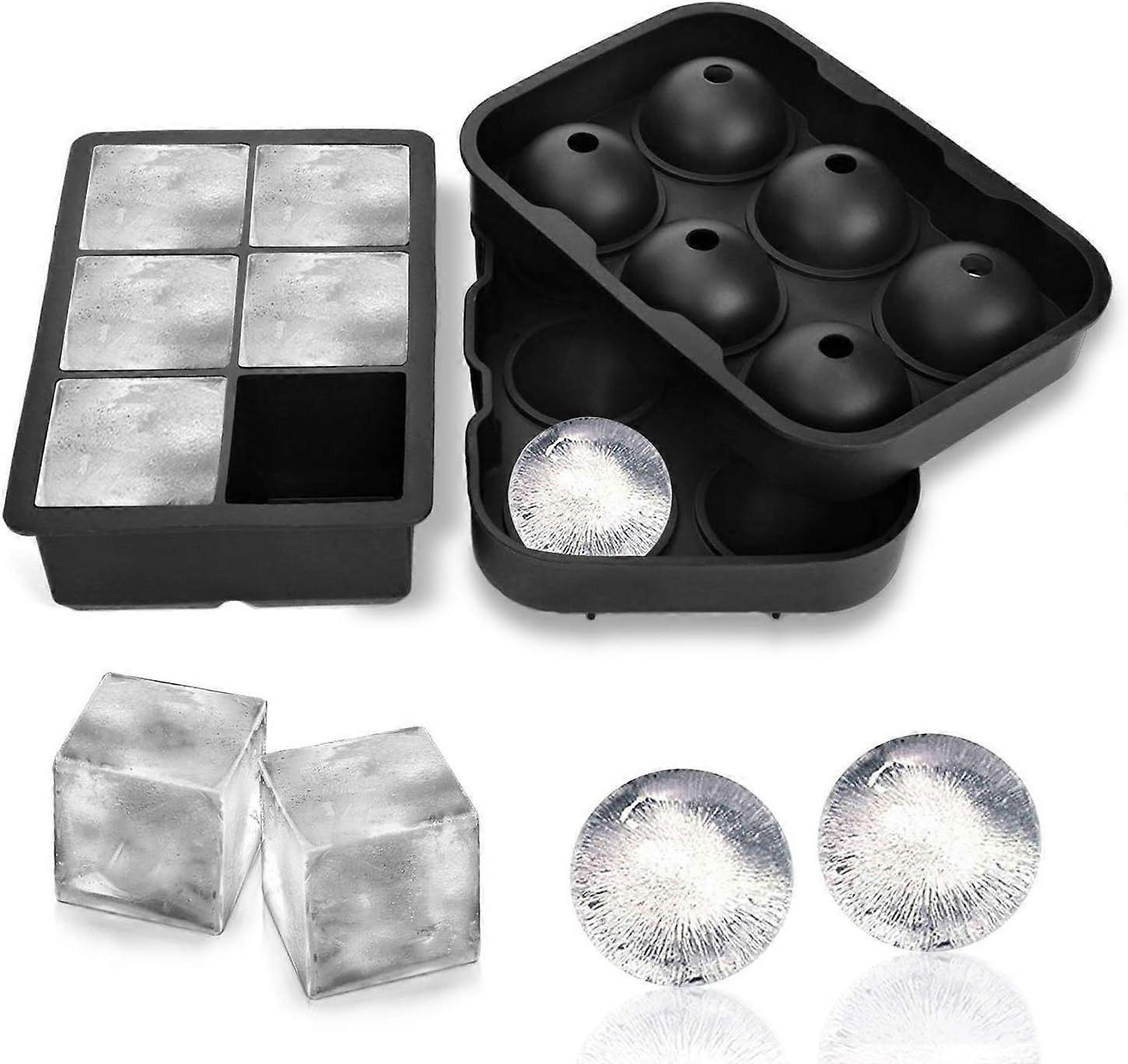 Six Hole Silicone Ice Cream Molds, Set of 2, Spherical Ball with Lid and Large Square Molds, Reusable and BPA Free