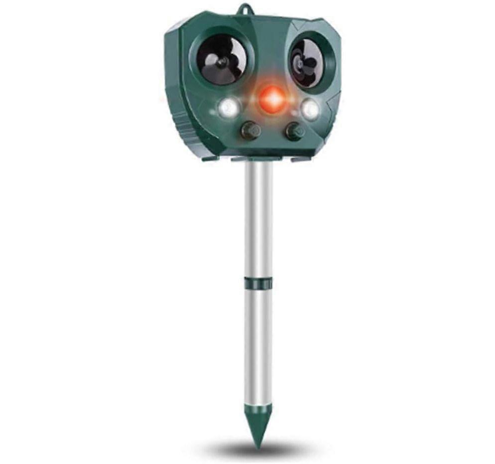 The insect repellent detects movement through a passive infrared sensor (PIR) and triggers an ultrasonic speaker to scare away unwanted animals and pests, thereby emitting a mixture of ultrasonic waves, sound waves, and powerful LED strobe lights. Irregular and variable frequencies can more effectively drive the most aggressive animals that may adapt to and immune to a certain frequency band. The dual speaker design and motion sensors extend the acoustic coverage to 5,000 square feet. The left and right angle of the radiation range is 210 degrees. Once the animal enters the 30-foot animal repellent, the motion sensor will emit ultrasonic waves, and the LED lighting will make the animal feel uncomfortable and run. Solar powered and waterproof-Chasehill mosquito repellent is equipped with a solar panel on the top, which can be charged by solar energy in the sun, or powered by a USB charging cable in rainy days. IP44 waterproof design makes it work normally in any weather conditions, perfect outdoor user experience. Effective and environmentally friendly-Ultrasound makes the animal feel uncomfortable and run away, while the strobe will only scare the animal. No traps, no killings, no pollution. But please keep the product away from children and infants' activity areas. Point the repellent at the area you want to protect, select the mode you want, and then carefully insert the spike into the ground where there is plenty of sunlight and turn it on. There is a hanging hole on the back of the device. You can hang the device on trees, fences, walls and other places where you want to scare animals. Product Frequency control button:1. 13.5KHZ-19.5KHZ Repel mice, rats, dogs, foxes, minks and other animals2. 19.5KHZ-24.5KHZ drive away cats, raccoons, badgers, skunks and other animals3. 24.5KHZ-45.5KHZ drive away bats, birds, rodents and other animals4. Strong flash5. All functions work, sweep frequency from mode 1-mode 2-mode 3, turn on strong flashing. This is the strongest working mode, because it will cover all the functions of the deviceTechnical specificationsInfrared sensing angle: 110 degreesDetection range: according to the size of the animal, up to 30 feet (the larger the size, the greater the range)Power supply: solar +3 AA rechargeable batteriesRed LED on: device is activatedWhat's in the packageUltrasonic insect repellent*1Ground pile*1AA battery*3Charging cable*1User Manual*1Notes1. Due to the human body's perception of some ultrasonic waves, please stay away from animal scarers in daily life areas. Do not install the device where babies and children often play. 2. When cleaning the insect repellent, please use moist and mild soapy water. Do not use irritating chemicals or corrosive substances that may damage the equipment. 3. If a new battery or the battery is not used for more than one month, the battery voltage may be completely discharged. It is recommended that you fully charge the battery 3-5 times, and charge it for 2-3 hours each time. 4. If the battery does not work properly or is out of power, please replace 3 1.2V AA rechargeable Ni-Cd or Ni-MH batteriesPlease charge regularly, otherwise it will affect the product function