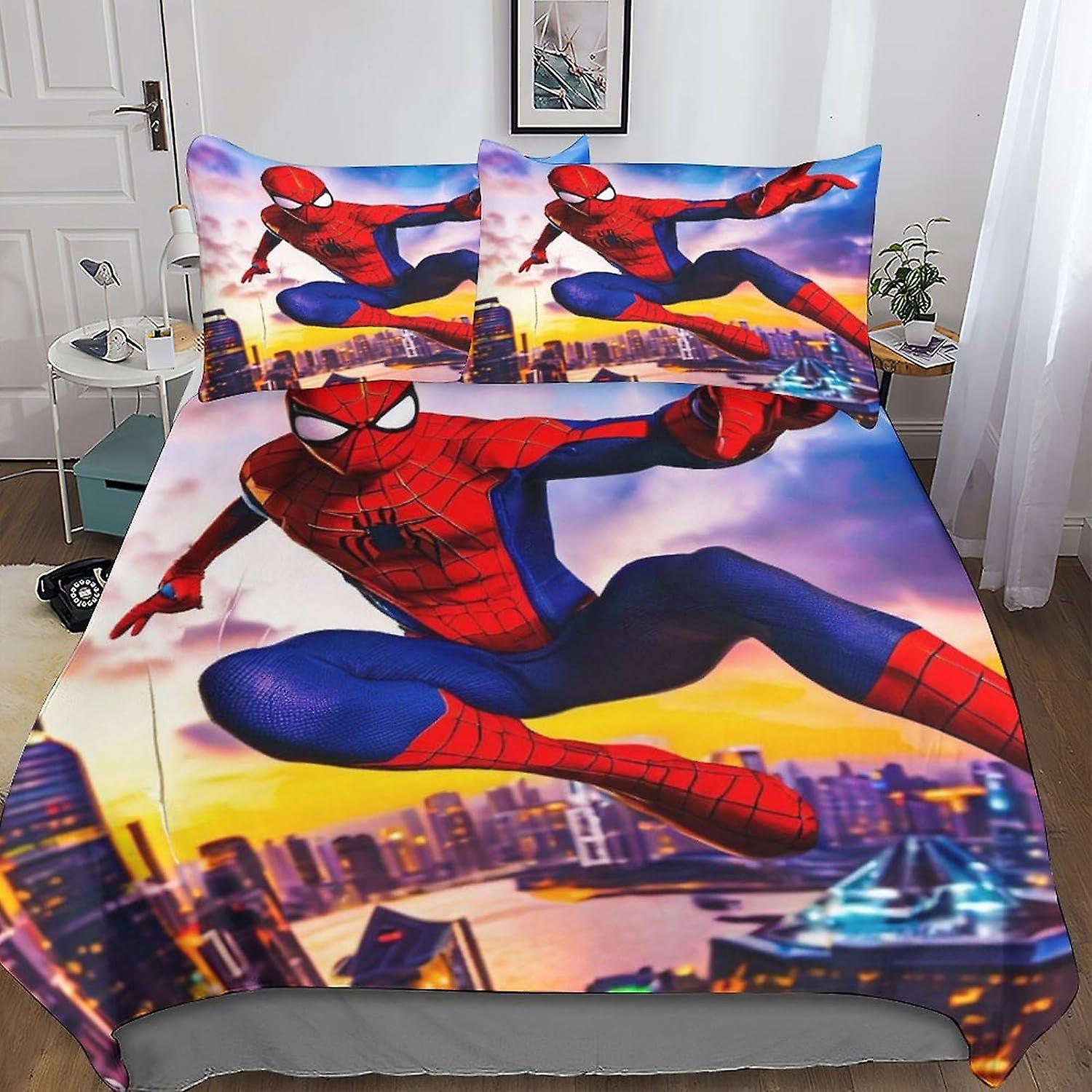 Spiderman Stylish Bedding Sets with Hidden Zipper Closure - 3 Pieces Movie Set in Microfiber with 3D Print And Pillowcases - Suitable for Boys And Gir