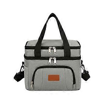 Spillproof Insulated Meal Bag Lunch Container Double Layer Sections Detachable Adjustable Strap For Outdoor Gray