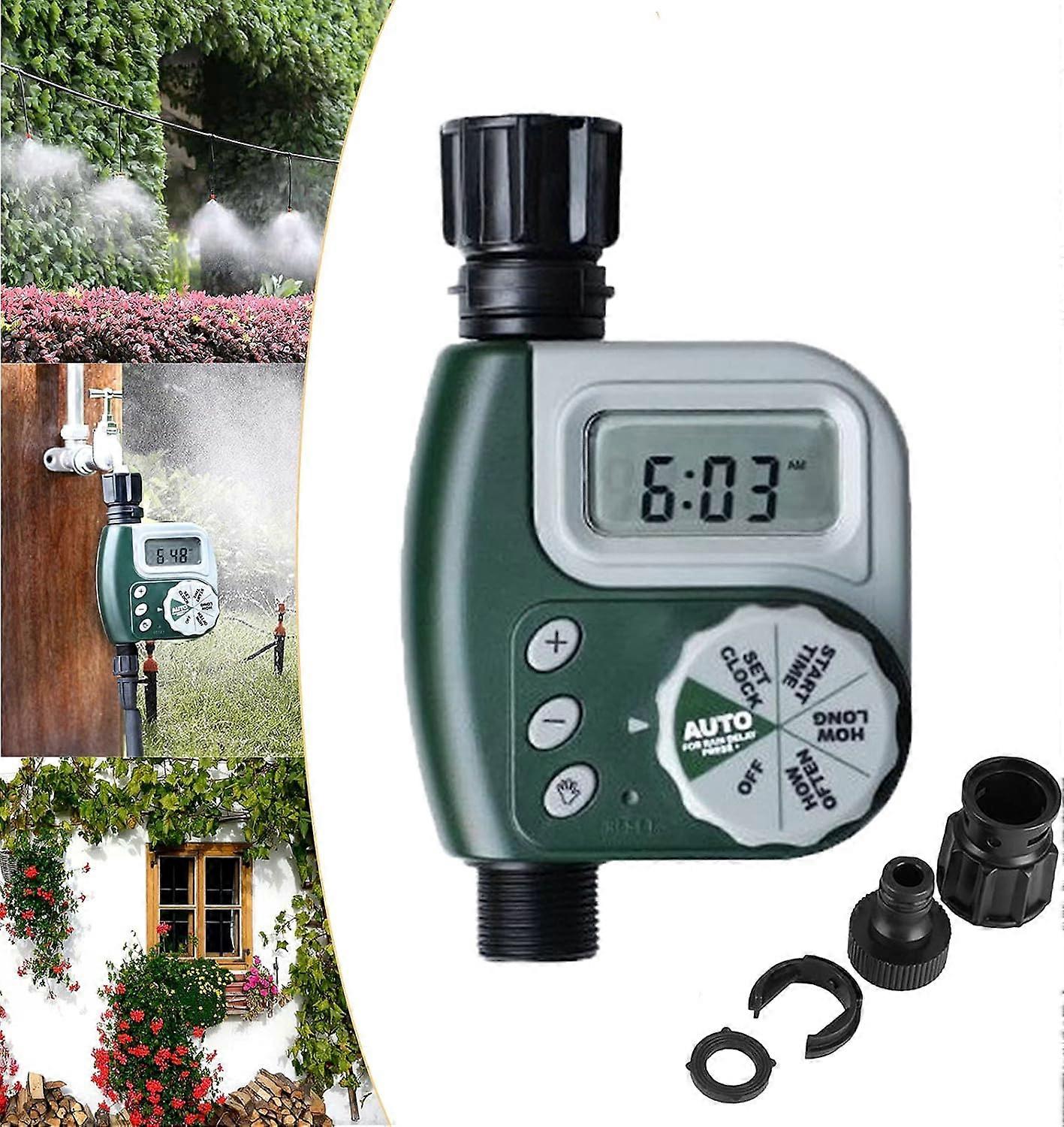 Sprinkler Timer: Customized Watering Solutions : Tailor your watering needs with our Sprinkler Timer featuring 3 independent programs for different days of the week, intervals, and week modes. Easy to Read & Operate: Large LCD Screen Experience : Our Timer boasts a large LCD screen and 5 intuitive buttons for effortless setup and monitoring of your watering programs. Durable Structure: Built to Last : Constructed with sturdy materials, our Timer is designed to withstand the elements, making it ideal for both indoor and outdoor use. Rain Delay Feature: Smart Water Management : Set a rain delay for 24, 48, or 72 hours without disrupting your scheduled programs, ensuring efficient water usage. Tool-Free Installation: Hassle-Free Setup : Install our Timer quickly and easily without the need for tools, perfect for faucets in various locations including tight corners. Imagine never having to worry about overwatering or underwatering your precious plants again. Our Sprinkler Timer, crafted with precision and convenience in mind, is your new gardening ally. With an easy-to-read LCD display and a child mode to prevent unwanted changes, it’s as practical as it is thoughtful. Designed for durability, this Timer is ready to serve you faithfully through all seasons, indoors or out. Get ready for a hassle-free gardening experience that saves water and time.