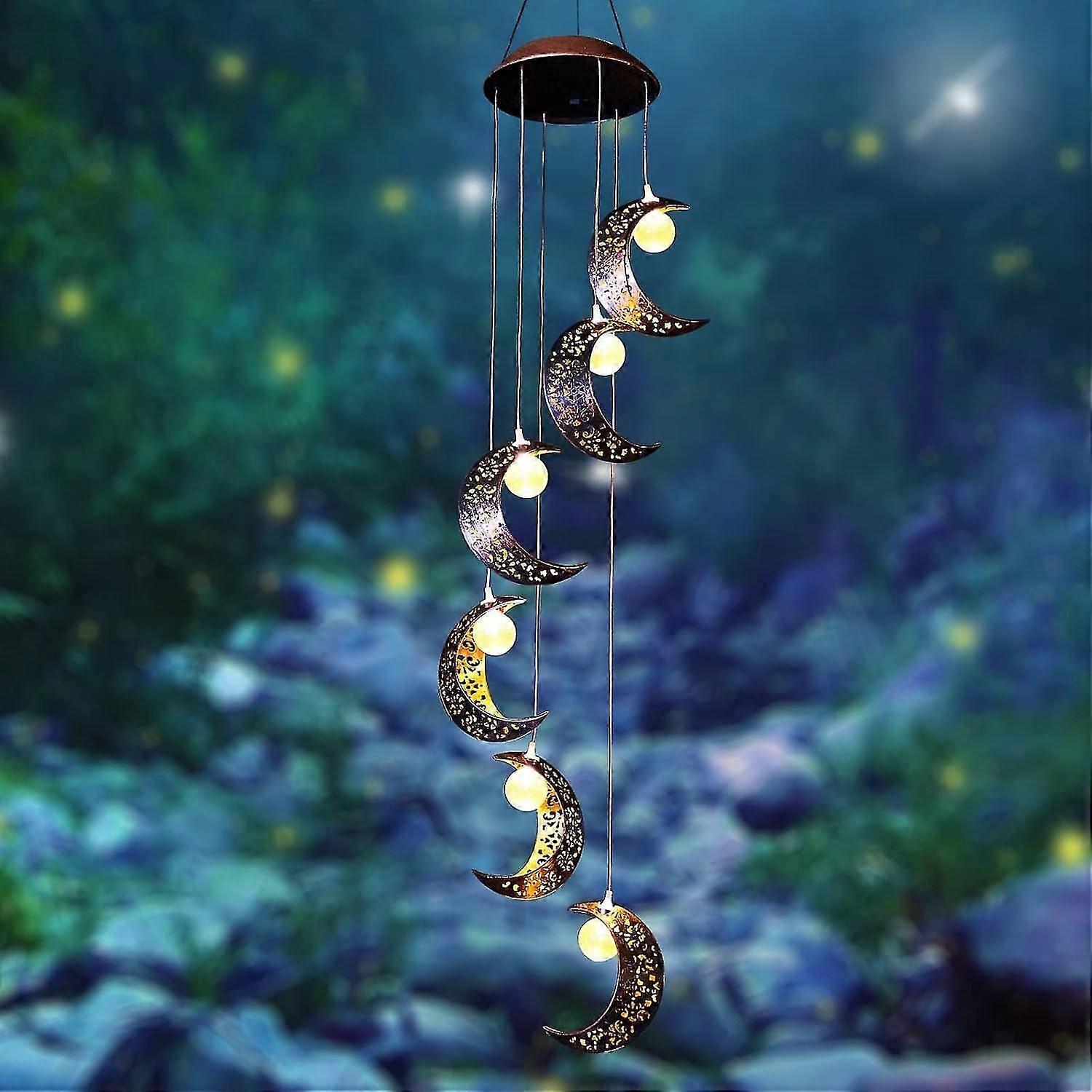 SQCLVSolar Wind Chimes for Outside with Sun Moon Star Solar Hanging Lights Outdoor Windchimes Garden Decor Mom Gifts for Mothers Day Grandma Neighbors