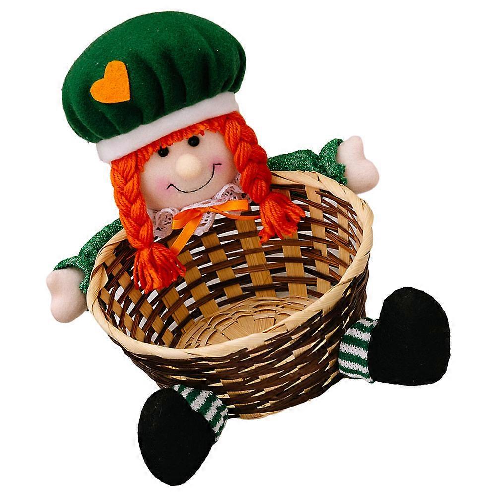 St Patrick's Day Candy Basket for Storage Use with Cloth and Rattan Material Multi Color 7 Inch