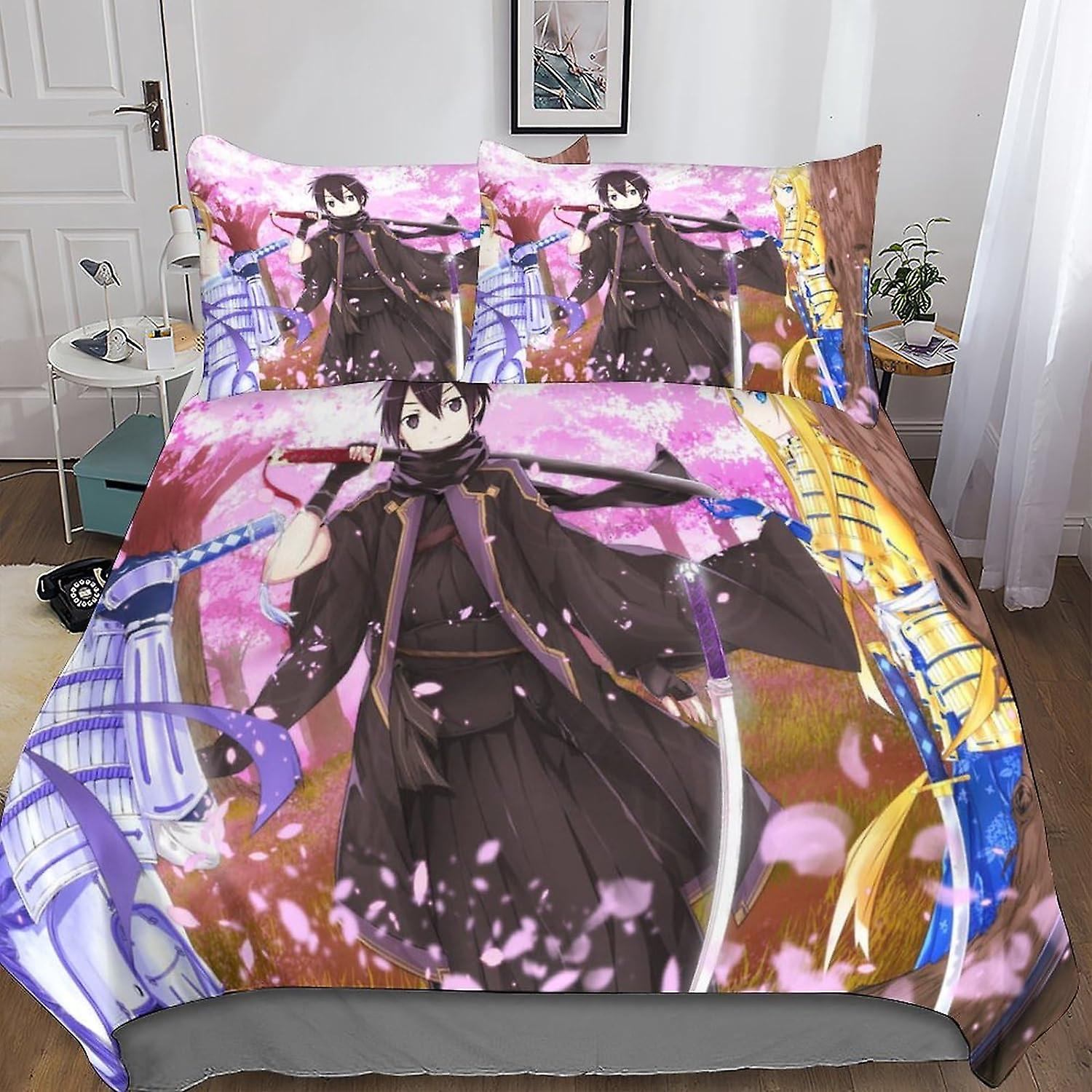 Sword Art Online Comforter Cover Set with Hidden Zipper Closure - Luxurious Microfiber Anime Bedding with 3D Print, Complete 3-Piece Set for Boys And