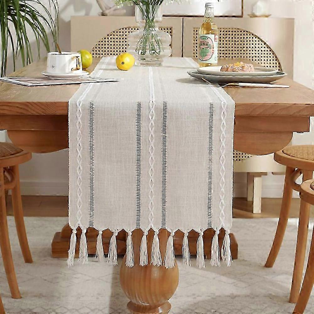 Table runner beige boho polyester odorless table runner country house style table runner with tassels 2025