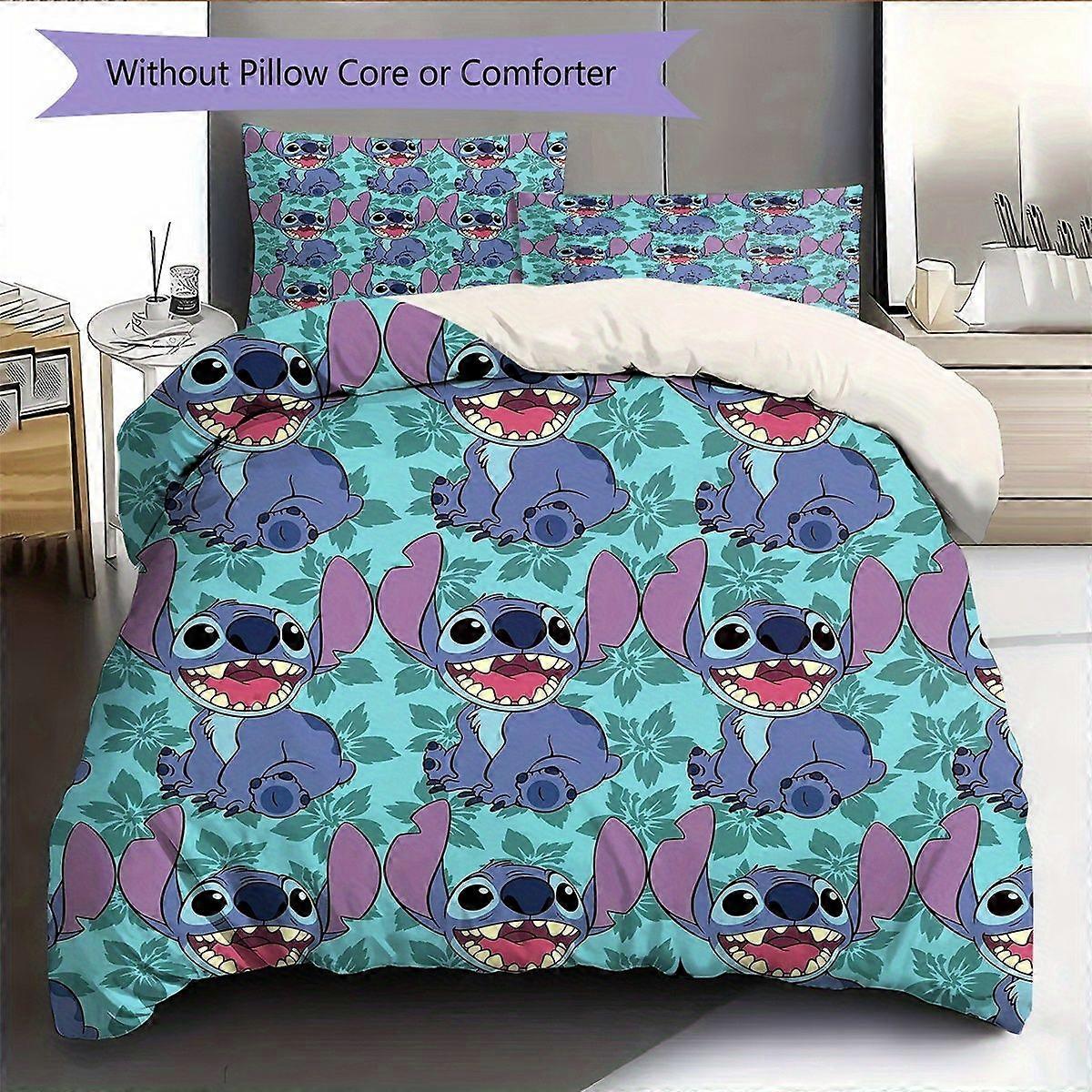 TE683 Sti-tch Print Bedding Set with Pillowcases - Vibrant Cartoon Design, Polyester, Machine Washable, Zipper Closure, Ideal for All Sea