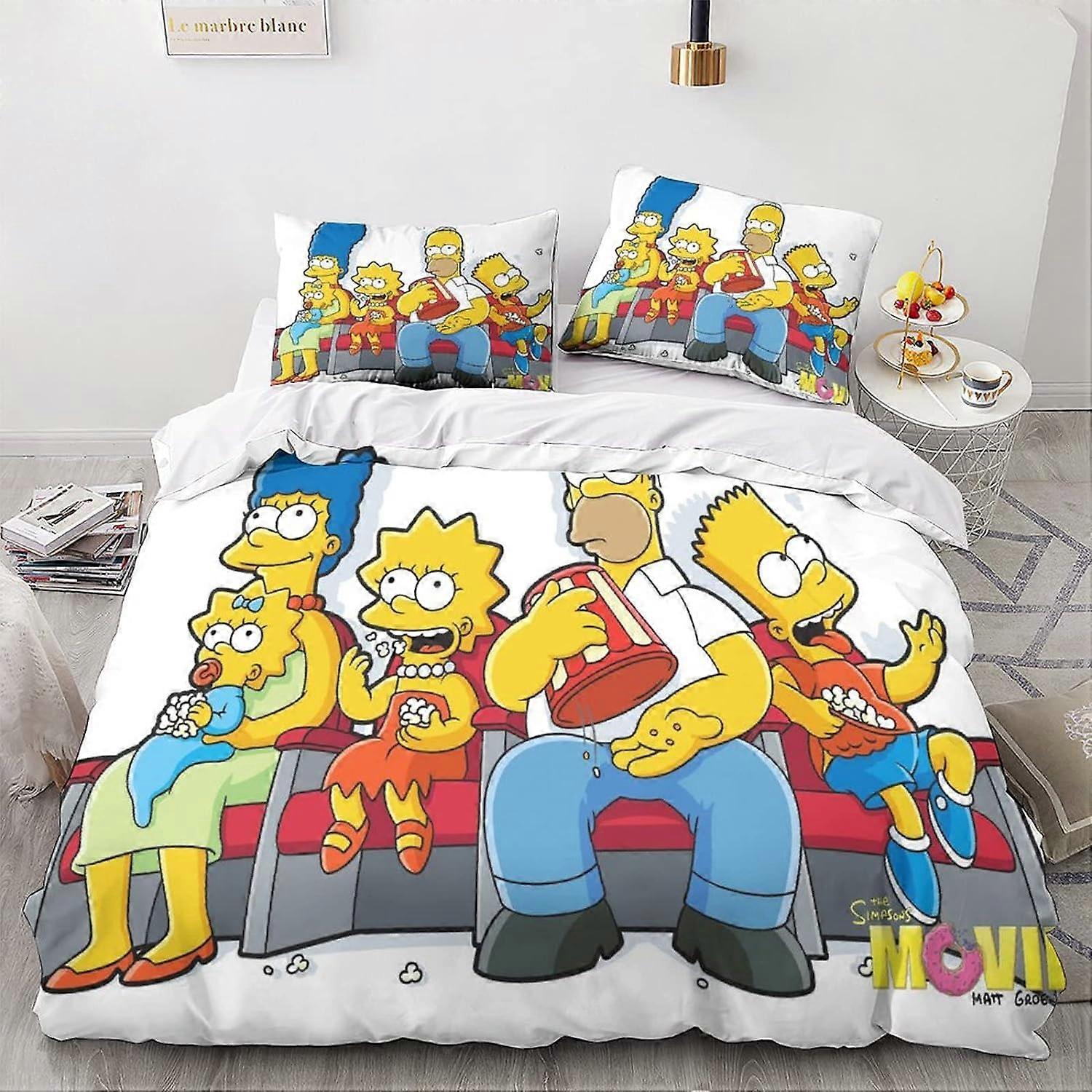The_Simpsons Bedding Set with Duvet Cover and Pillowcase,Microfiber,Digital Print Animation Animation Characters D,King 135*200 CM