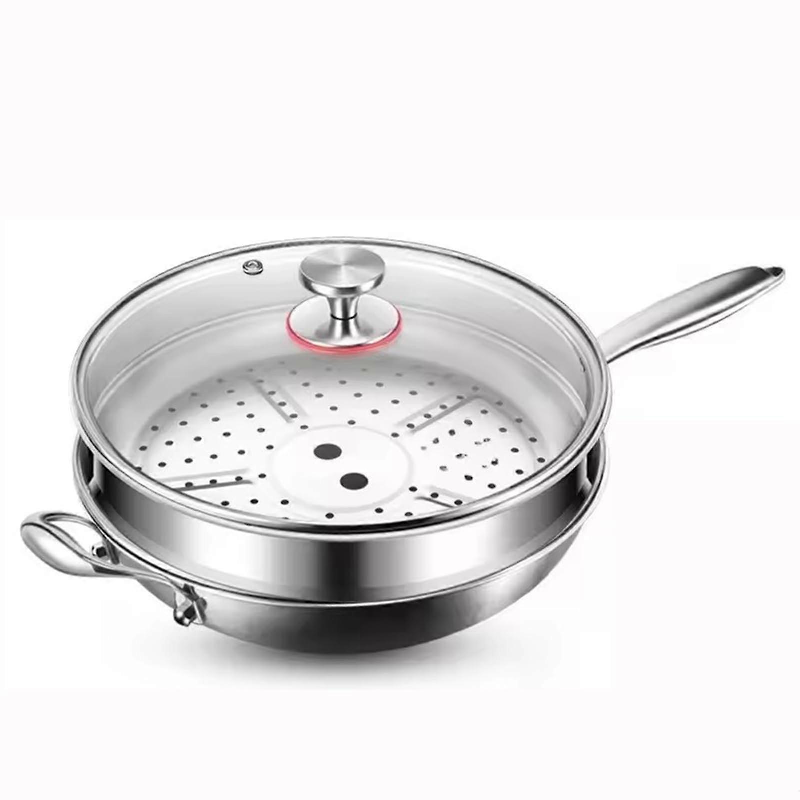 Durable, scratchresistant titanium frying pan with lid and steamer — designed for everyday healthy cooking Key benefits Longlasting construction: Made from pure titanium metal for corrosion resistance and longterm durability. The scratchresistant surface holds up to regular use. Healthier cooking with less oil: Strong nonstick performance and a hammered finish let you cook with less oil or butter, supporting a lowerfat, everyday diet. Faster, even heating: Fivelayer base design distributes heat evenly for quicker, more efficient cooking and better temperature control to reduce burnt or stuck food. Easy cleanup and versatile use: Dishwasher and ovensafe for simple cleanup. Compatible with induction, ceramic, halogen, gas and electric stovetops. What makes this pan stand out Pure titanium material provides corrosion resistance and durability compared with conventional nonstick pans. Hammered, nonstick surface reduces sticking and eases release of food without heavy coatings. Integrated lid and steamer function add flexibility for frying, steaming and simmering. Practical features Scratchresistant nonstick surface for everyday use. 5layer heating system for rapid, even heat distribution. Ovensafe construction for finishing dishes or keeping food warm. Safe for all common cooktops: induction, ceramic, halogen, gas, and electric. Dishwashersafe for loweffort cleaning. Typical uses Quick weekday breakfasts: Fry eggs or omelets with minimal oil and easy release. Stirfry and sauté: Even heating helps cook vegetables and proteins quickly without hotspots or sticking. Steaming and simmering: Use the included lid/steamer for fish, dim sum, or gentle steaming of vegetables. Care tips Use utensil types recommended for nonstick cookware to extend surface life. Can be cleaned in the dishwasher or washed by hand; ensure pan has cooled before submerging in cold water. This titanium hammered pan pro with lid and steamer combines durable construction, efficient heat control and broad stovetop compatibility to make everyday cooking faster, cleaner and healthier.