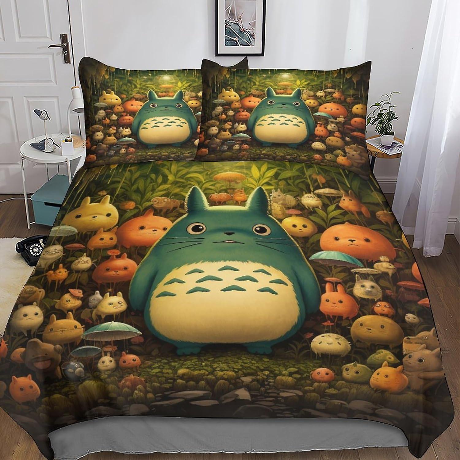 Totoro Chic Comforter Cover Set with Hidden Zipper Closure - Stylish Microfiber Anime Cartoon Bedding with 3D Print, 3-Piece Set with Pillowcases, for