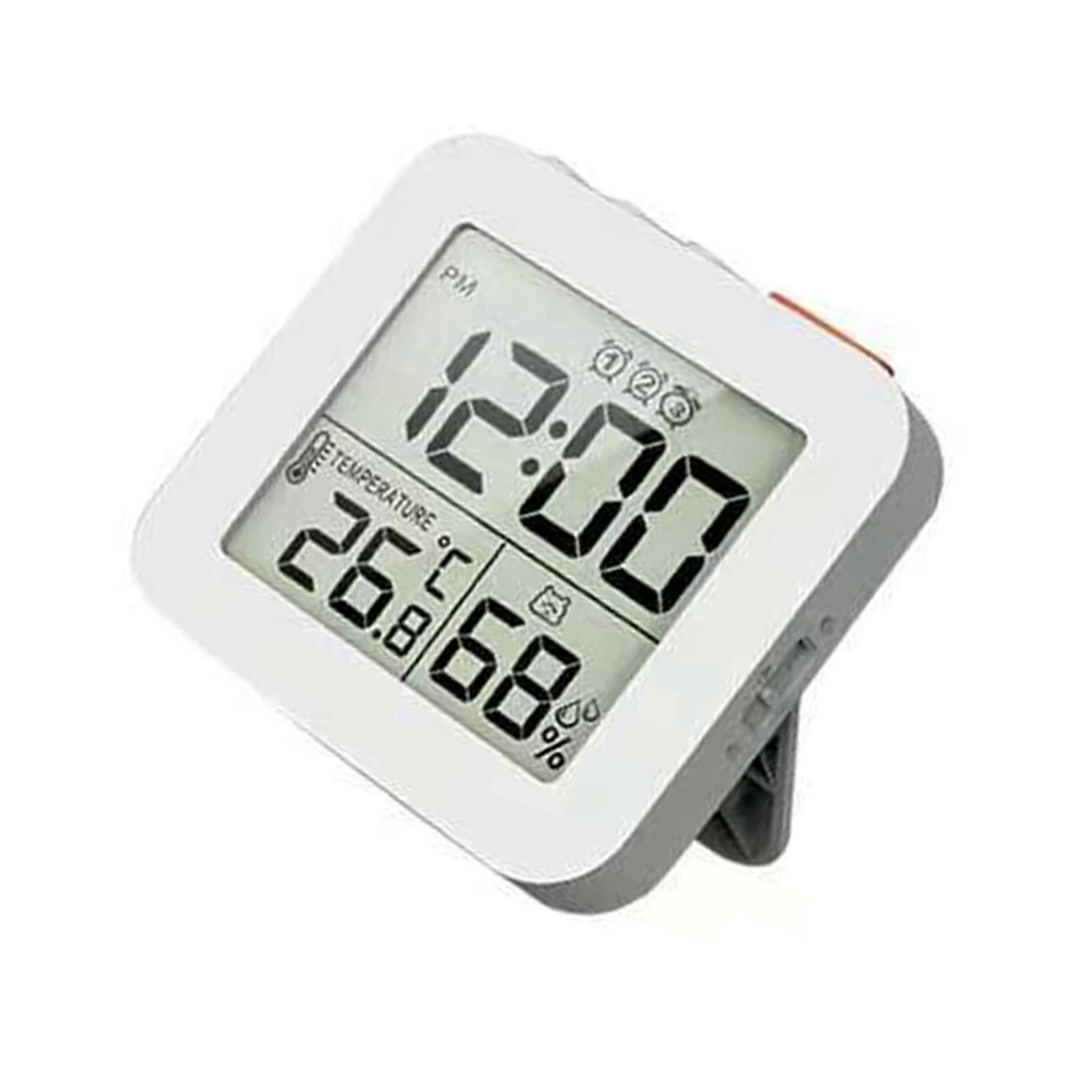 Travel Clock 3 Alarms Snoozes Function LCD Screen Temperature Humidity Sensors Compacts Folding Design Battery Operated White