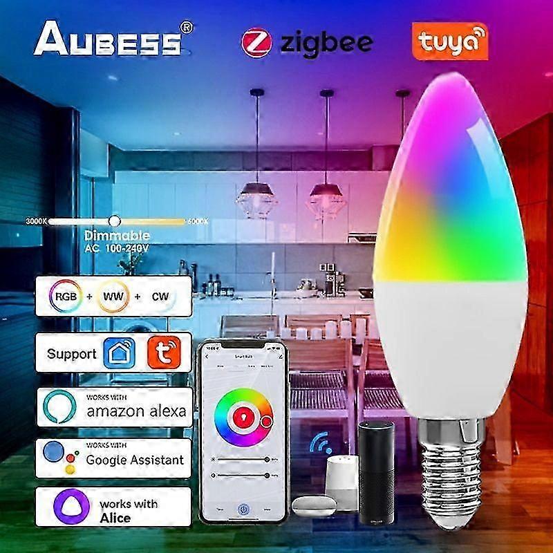 Tuya Wifi ZigBee Smart Bulb E14 LED Candle Light RGB Dimmable Smart Life APP Control