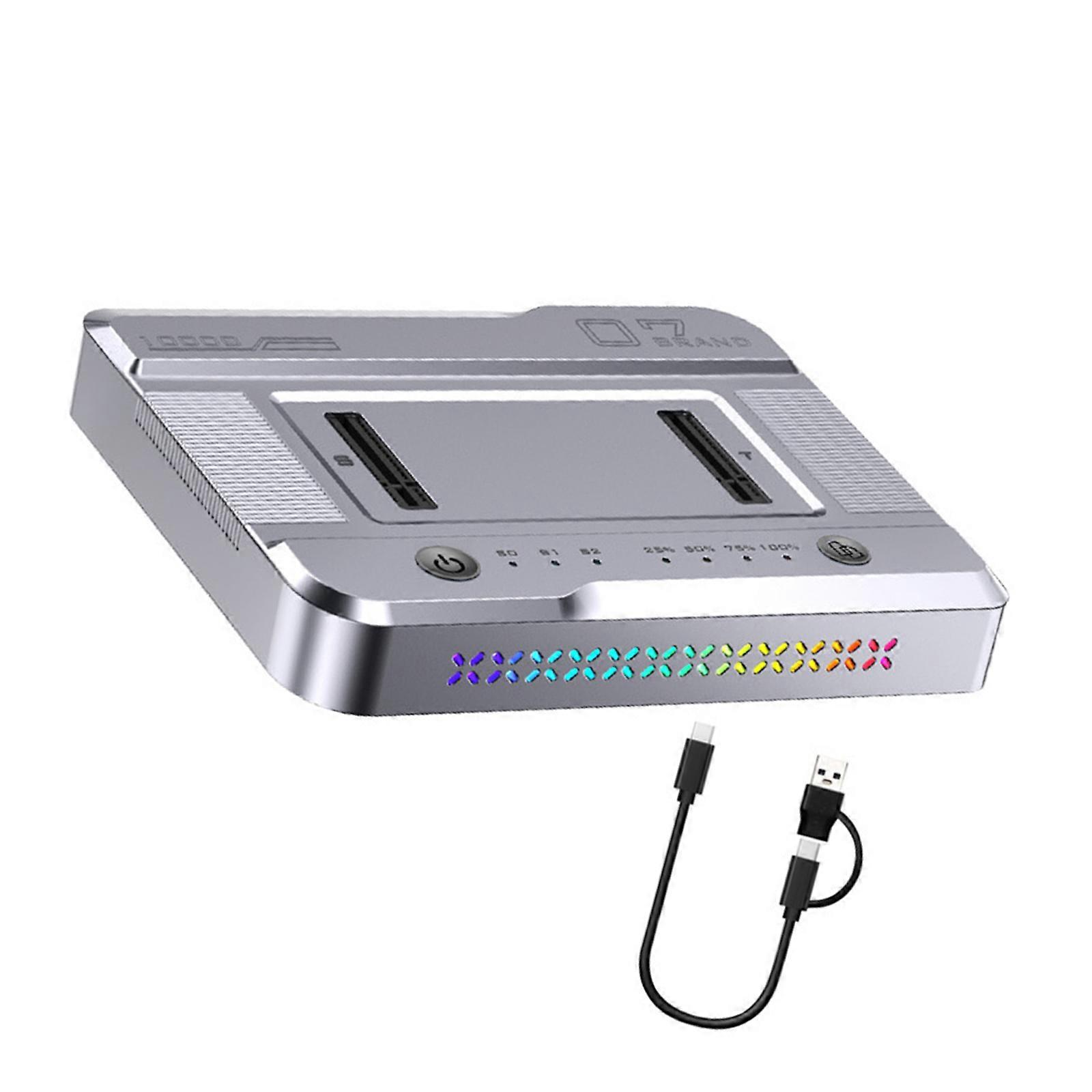 Two Bay M.2 NVMe Solid Disk Dock USB3.2 20Gbps Color Lighting Fast Speed 2000MB/S Data Transfer Aluminum Alloy Portable Design Multicolor