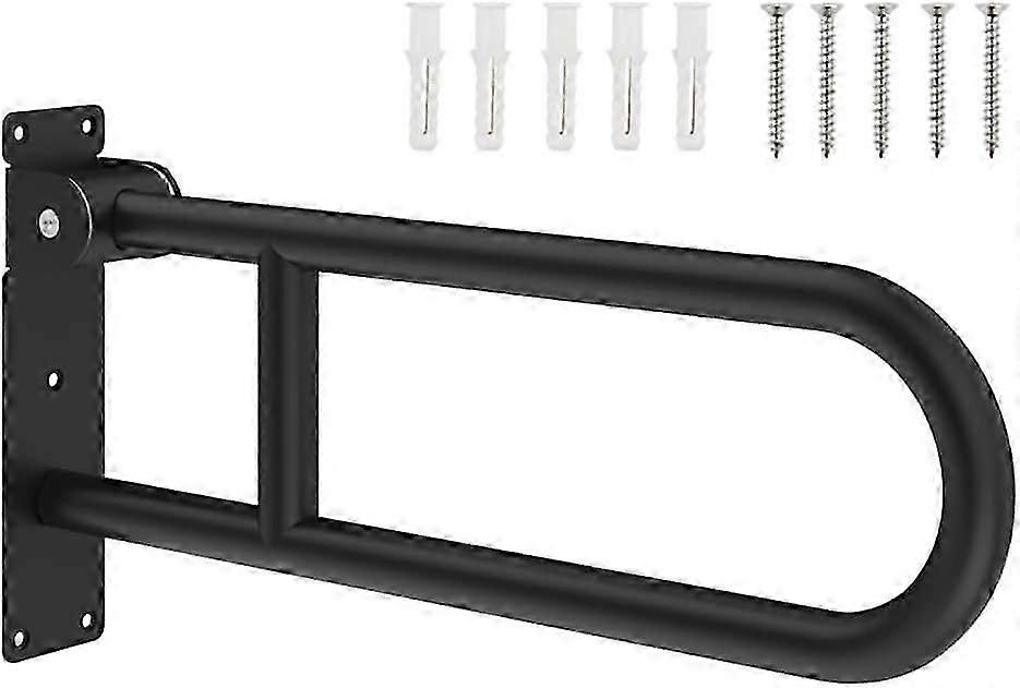 Ushaped foldable toilet grab bar, matte black, for bathroom, wallmounted, foldable safety rail for shower, black, 60cm.