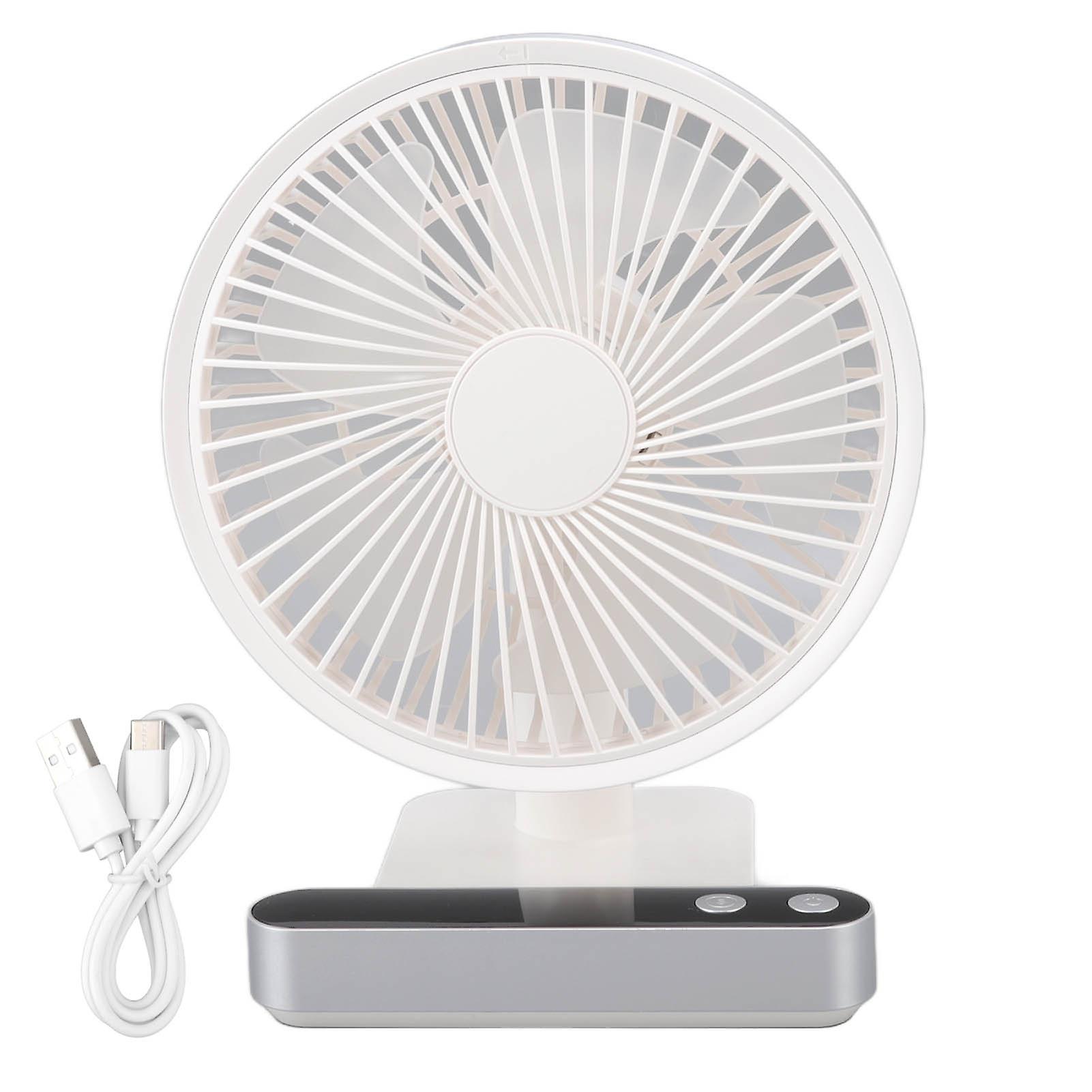 USB Small Desk Fan 5000mAh Rechargeable 4 Speed Low Noise 180° Shaking Head White