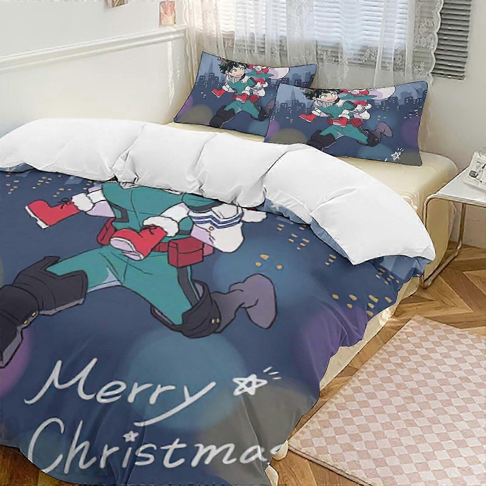 v1902 Bed Sheets My Hero ademia Bedding Set Comfortable and Lightweight Cartoon Bedding3-Piece Set (Available in Multiple Sizes) Lc (1 Duvet Cover and