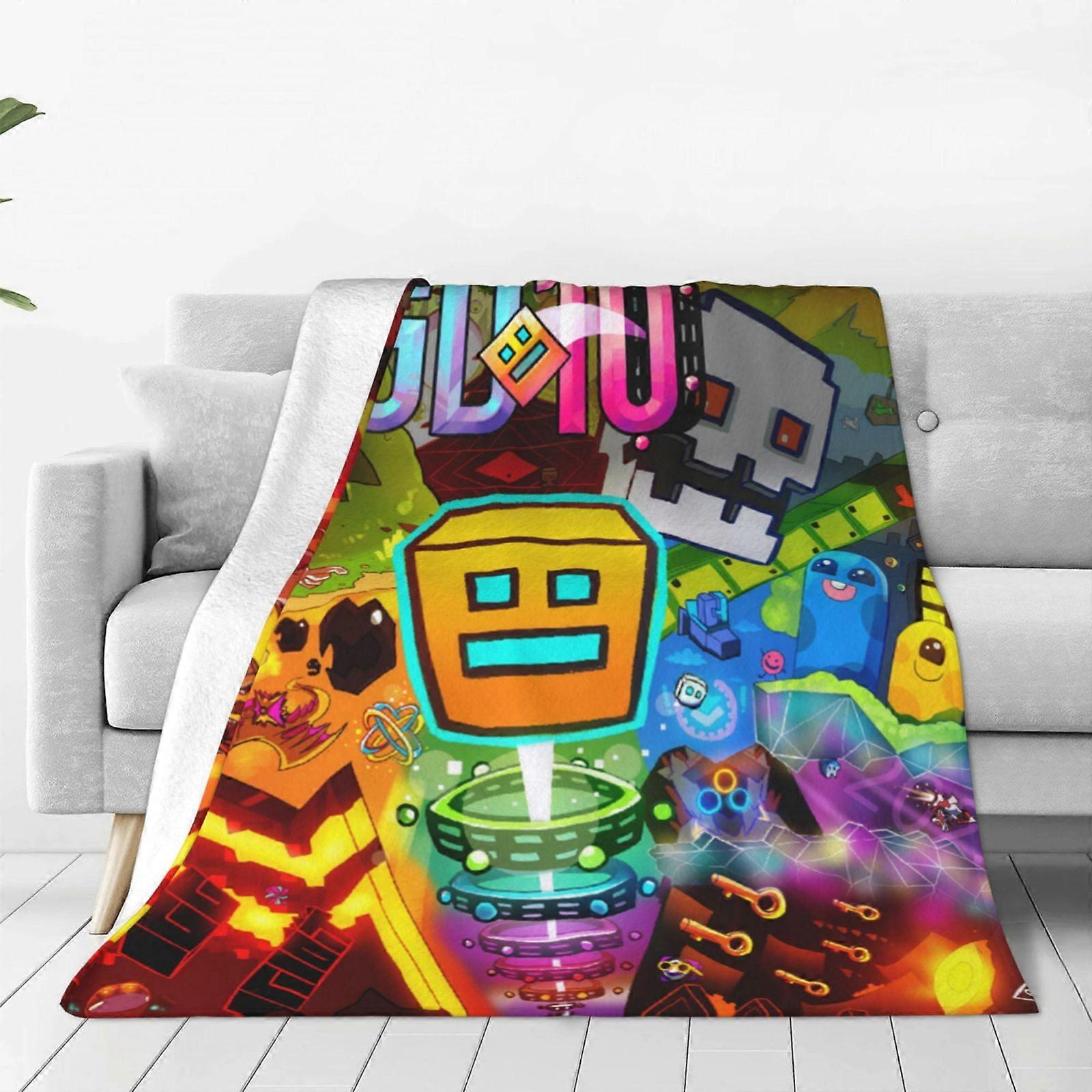 v225 Geometry Dash Flannel Blanket 3d Printing Anime Throw Blanket Unisex Super Soft Plush Blanket For Bedding Sofa 40X30"" hy225