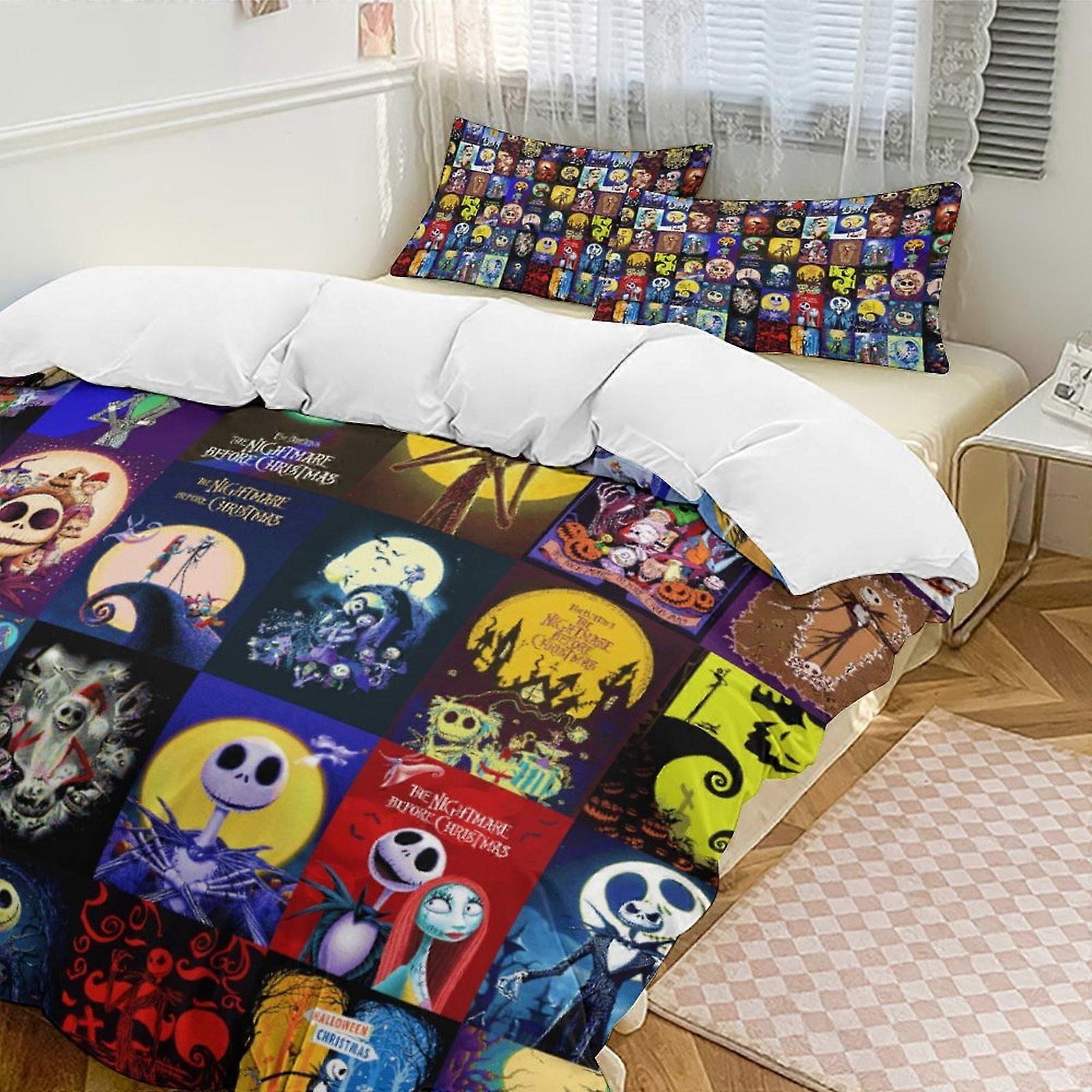 v6985 Bed Sheets Bedding Splice The Nightmare Before Christmas Comforter Set Soft 3 Pcs Twin Bedding Sets Thicken for All Season, 1 Comforter 2 Pill
