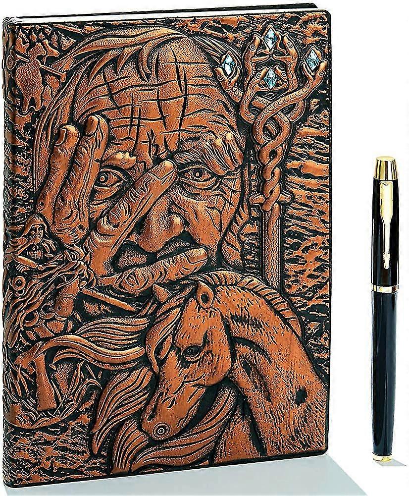 Vintage 3d Embossed Leather Notebook With Gold Pen. At 5. Old Vintage Diary Leather Notebook Lined Travel Notebook Notepad Handmade Notepad