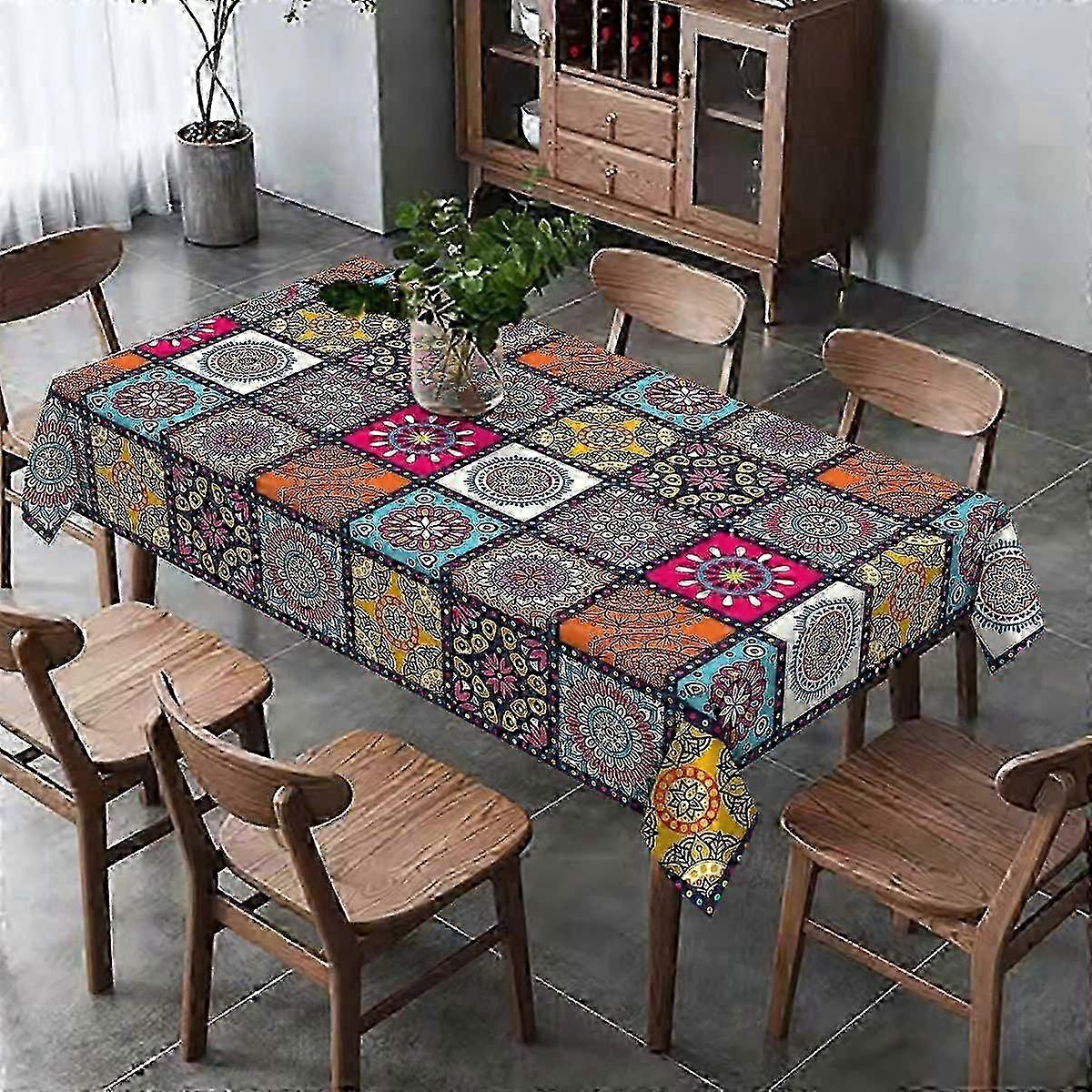 w Waterproof Polyester Geometric Table Cloth for Square Dining Tables