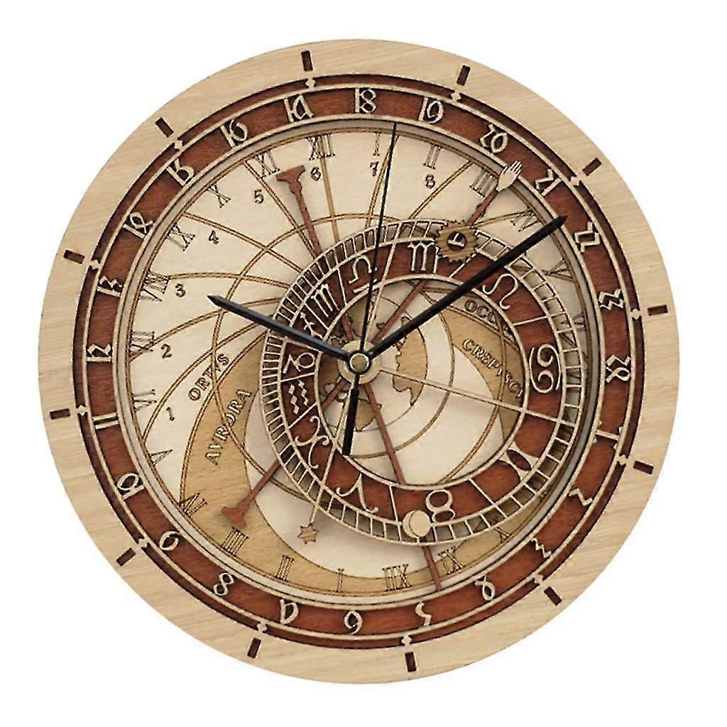 Wall Clock 3D Retro Retro Wooden Noiseless Number Astronomical Clock Brown