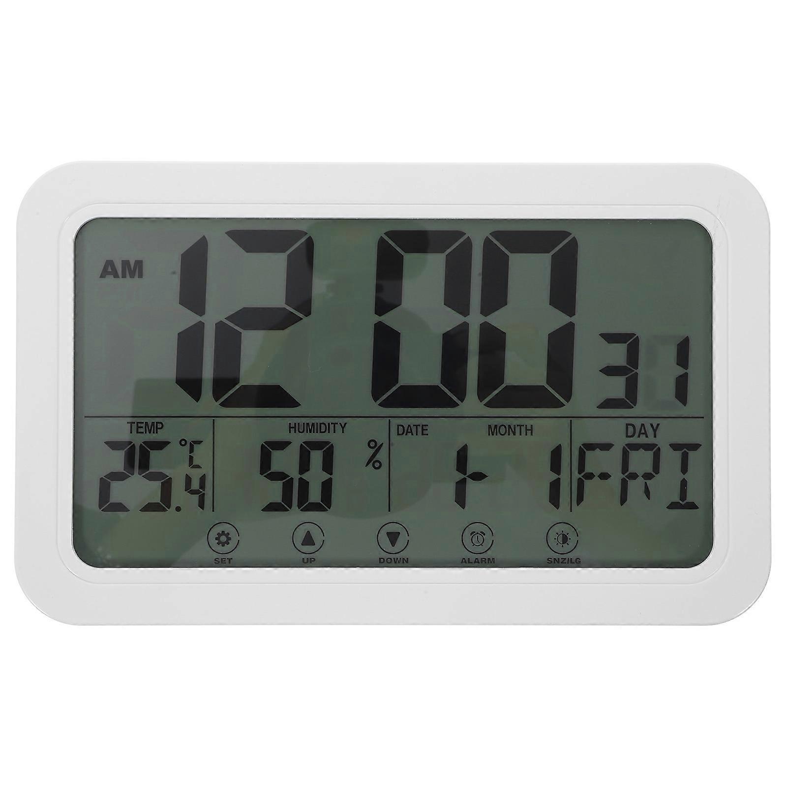 White Plastic Digital Wall Clock with Perpetual Calendar and Mute Function for Home Use 1pc