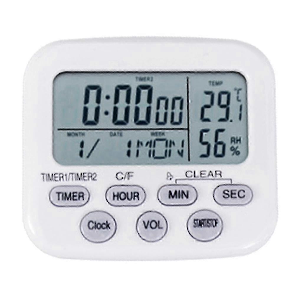 White Timer/thermometer/hygrometer/alarm Clock/calendar Digital Electronic