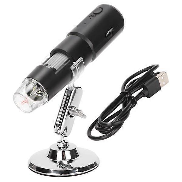 Wireless digital microscope 50X to 1000X USB mini black handheld microscope with 8 LED lights for PC tablets laptops.