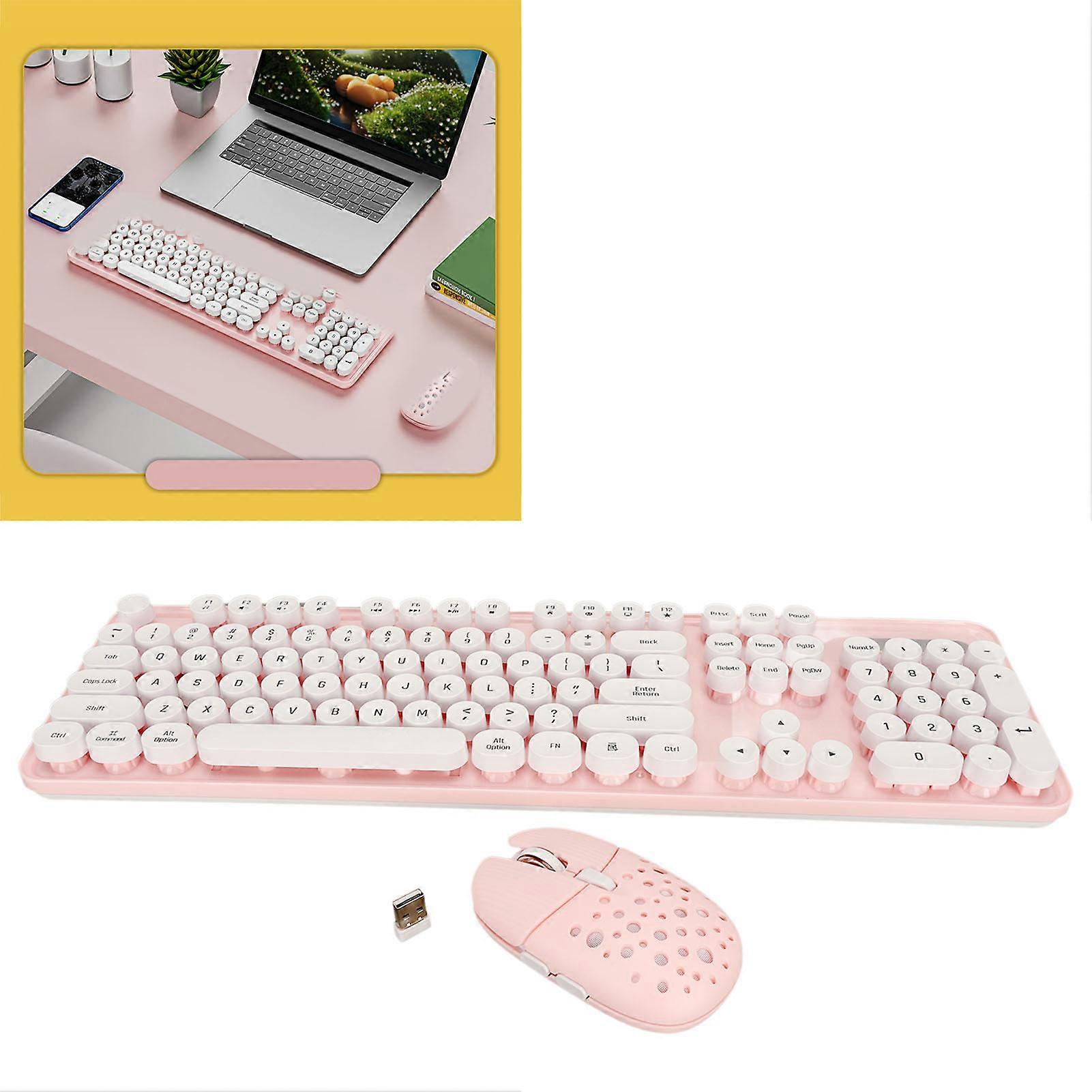 Wireless Keyboard and Mouse Combo Pure Color Retro 2.4G Wireless Keyboard Mouse with Round Keycaps And Numeric Keypad Pink Board