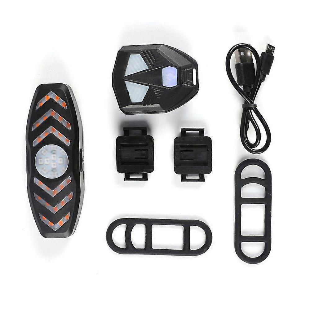 Features1High Brightness: The taillight adopts high-lumen beads, which greatly improve the brightness, and can effectively remind the vehicle behind and improve the safety of riding at night. 2Easy to Control: Equipped with a wireless remote controller, you can turn on the corresponding lights according to the road conditions when riding, and turn on the turn signal when turning, which is convenient for operation. 3Multiple Light Modes: The rear light has 5 light modes, left and right turn signals with a horn, red light keep on or flashing, all flashing, suitable for a variety of riding occasions. 4Long Endurance: Built-in 900mAh rechargeable battery, low power consumption and long endurance. USB quick charging, with silicone seal, nice waterproof and dustproof effect. 5Wide Application: Easy to install and disassemble, very suitable for installation on mountain bikes, road bikes, city bikes, etc. With a loud horn to effectively remind passersby.SpecificationIntelligent bike turn signal supports a variety of light modes and is suitable for different riding occasions. High brightness with a horn can effectively remind passers-by and rear vehicle, and improve the safety of riding at night.Features:High Brightness: The taillight adopts high-lumen beads, which greatly improve the brightness, and can effectively remind the vehicle behind and improve the safety of riding at night.Easy to Control: Equipped with a wireless remote controller, you can turn on the corresponding lights according to the road conditions when riding, and turn on the turn signal when turning, which is convenient for operation.Multiple Light Modes: The rear light has 5 light modes, left and right turn signals with a horn, red light keep on or flashing, all flashing, suitable for a variety of riding occasions.Long Endurance: Built-in 900mAh rechargeable battery, low power consumption and long endurance. USB quick charging, with silicone seal, nice waterproof and dustproof effect.Wide Application: Easy to install and disassemble, very suitable for installation on mountain bikes, road bikes, city bikes, etc. With a loud horn to effectively remind passersby.Specifications:Color: BlackMaterial: ABSLight Source: LEDBattery: Built-in 900mAh Lithium BatteryCharging Time: 3 HoursLight Size: 95 * 35mm/ 3.7 * 1.4inLight Weight: 43.5g/ 1.5ozRemote Controller Size: 54 * 45mm/ 2.1 * 1.8inRemote Controller Weight: 19.5g/ 0.7ozPackage Size: 120 * 115 * 32mm/ 4.7 * 4.5 * 1.3inPackage Weight: 111g/ 3.9ozPacking List:1 * Bike Light1 * Remote Controller1 * USB Cable2 * Bracket2 * Silicone StrapsPackage List1 * Bike Light1 * Remote Controller1 * USB Cable2 * Bracket2 * Silicone Straps