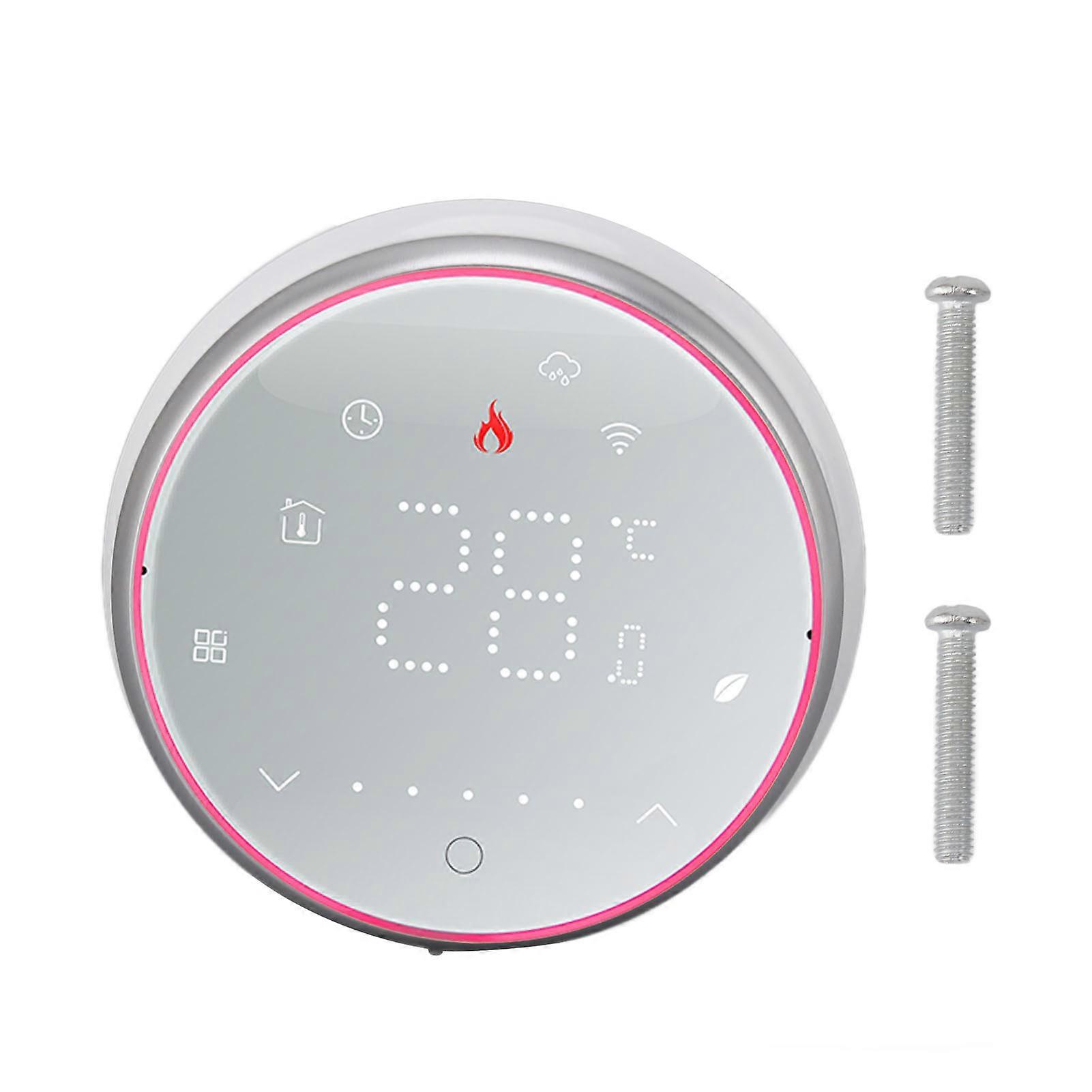 Wireless WiFi Smart Thermostat LED Display Voice APP Control AC95~240V Energy Saving Smart Round Thermostat for Boiler Heating White(YMCAT)