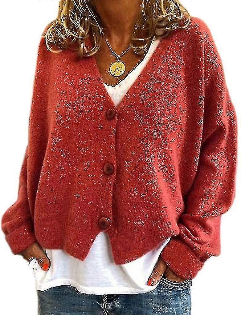 Women's V-Neck Knit Cardigan Casual Solid Color Open Front Spring Autumn