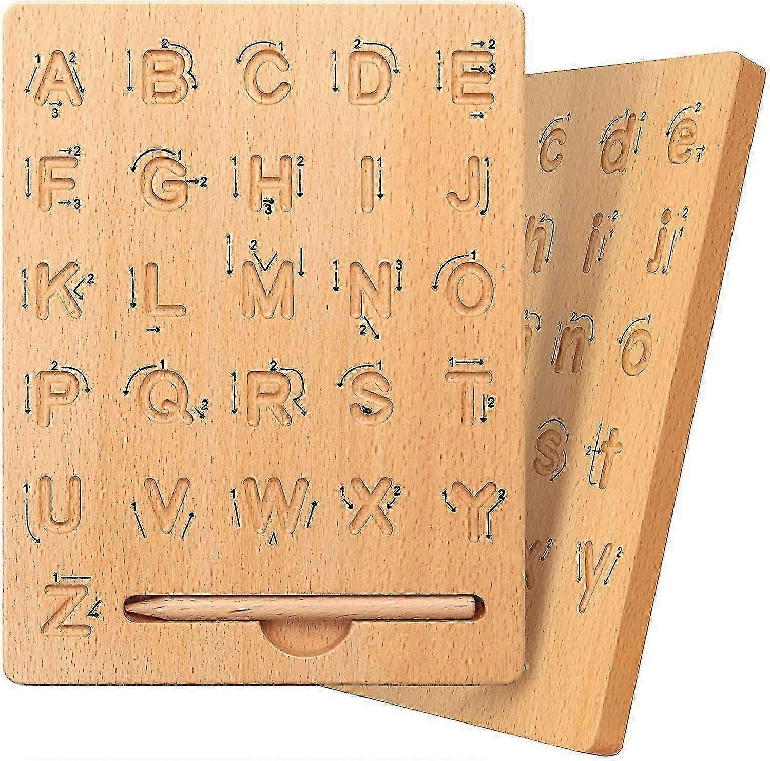 Wooden Alphabet Practice Board, Double Sided Alphabet Tracing Tool to Learn