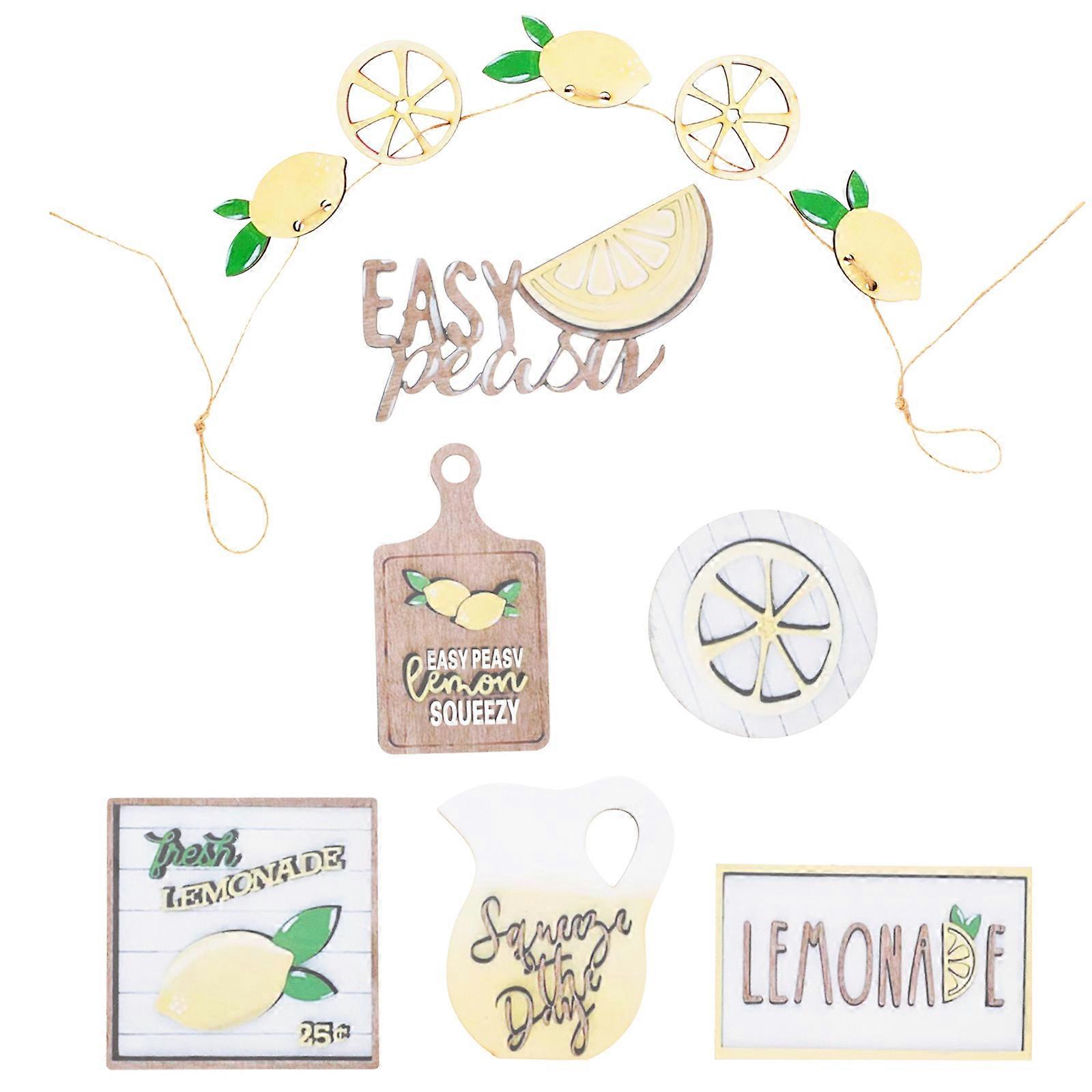 Wooden Lemon Elements Adornment for Table Display Decoration 7Pcs