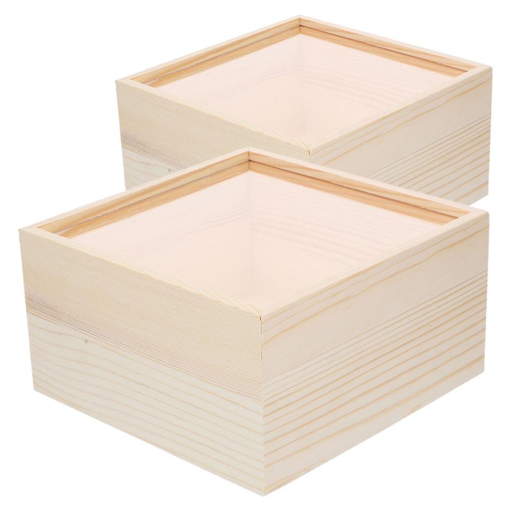Wooden Pigment Box Sliding Box Home Use Storage Container Transparent Acrylic Lid 2Pcs