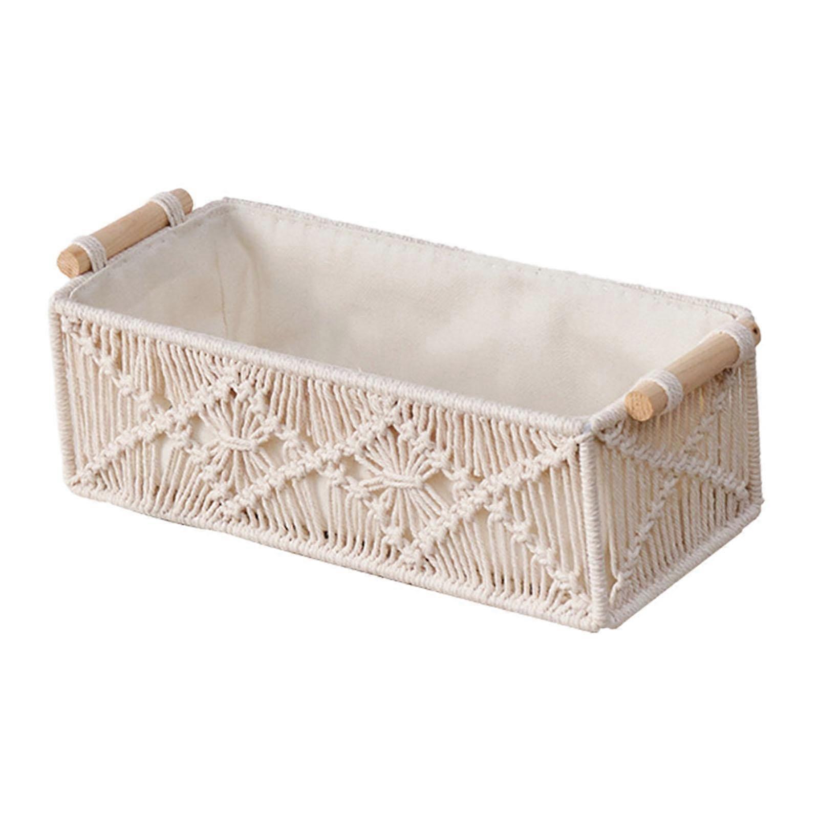 Woven Basket with Handles Desktop Storage Box Container Decorative Rectangular