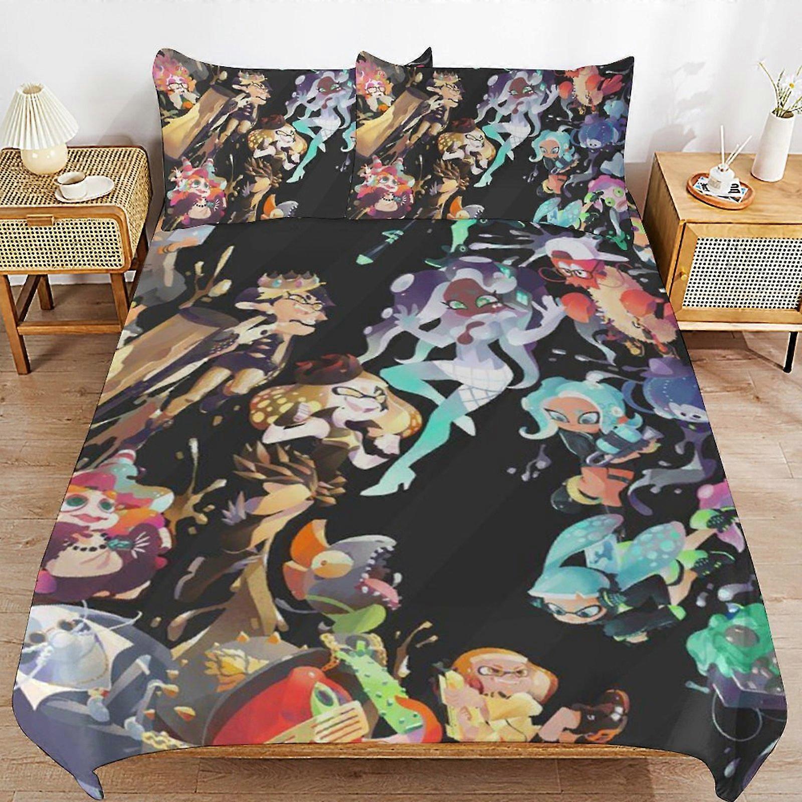 x219 Splatoon Comforter Set 3 Pieces Quilt Cover Set Soft Bedding Sets for All Seasons (1 Comforter 2 Pillowcases) hb219