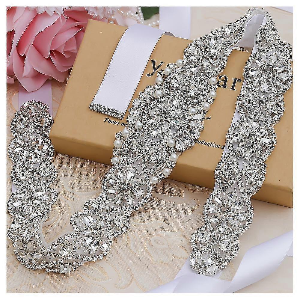 Yanstar Bridal Belt Wedding Belt Silver Sashes Crystal Wedding Belts