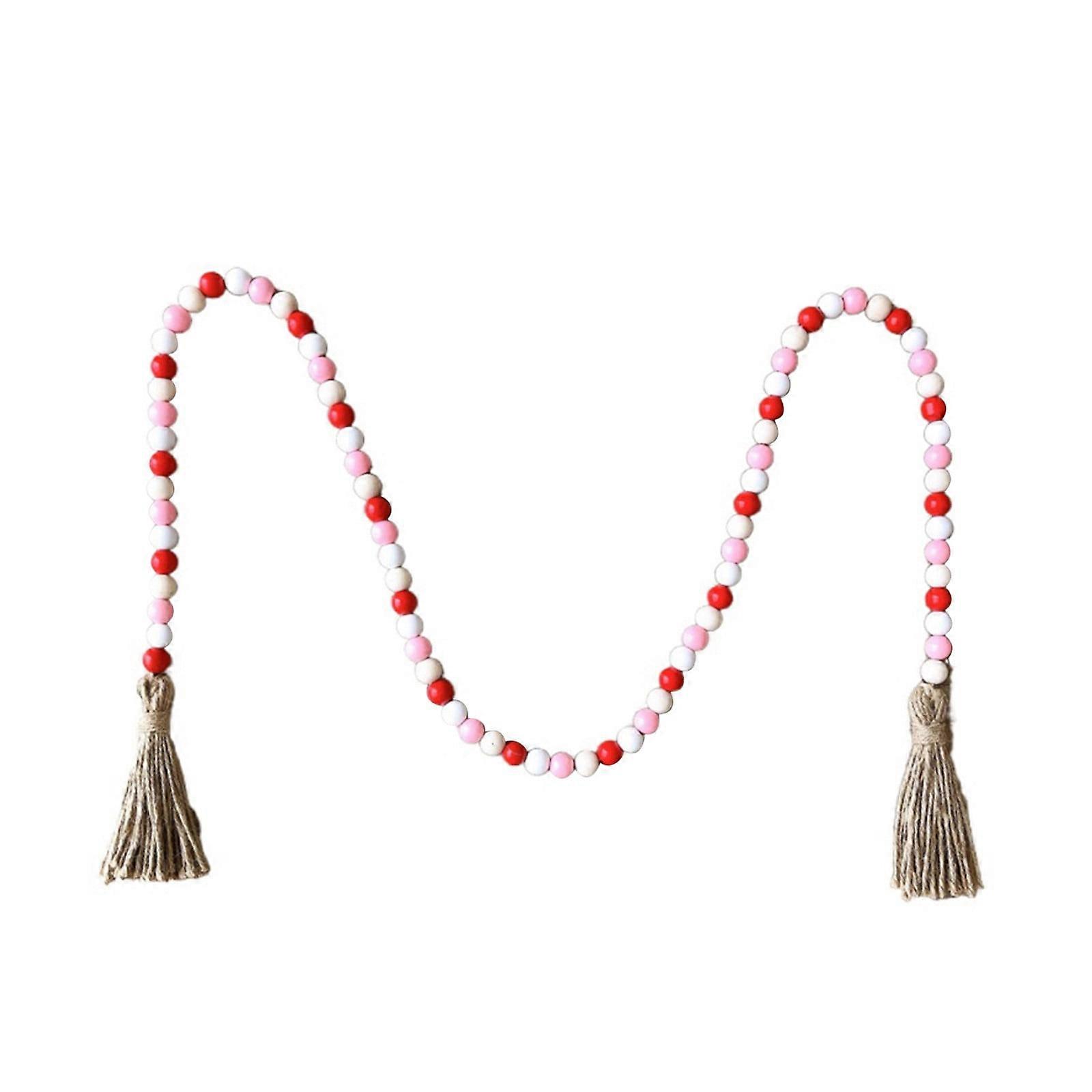 YiFudd Wooden Beads Heart Wooden Beads Valentine's Day Supplies Wooden Beads Tassel For Making Garlands Valentine's Day
