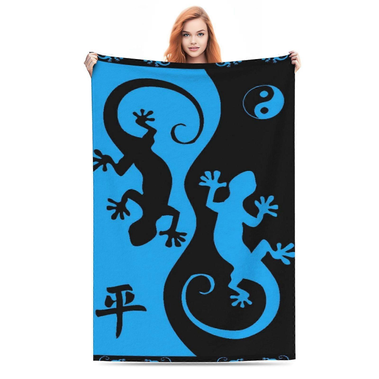 Yin Yang Gecko Design High-Definition Digital Print Flannel Blanket, All Season Multi-Purpose Soft Warm Throw for Sofa, -POIAS350