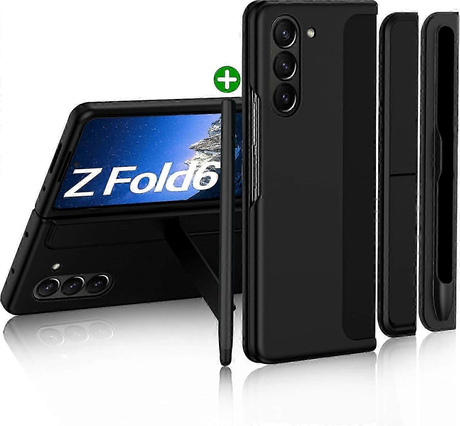 For Samsung Galaxy Z Fold 6 Case with S Pen, Replaceable S Pen Holder & Kickstand Matte PC Shockproof Full-Body Rugged Case