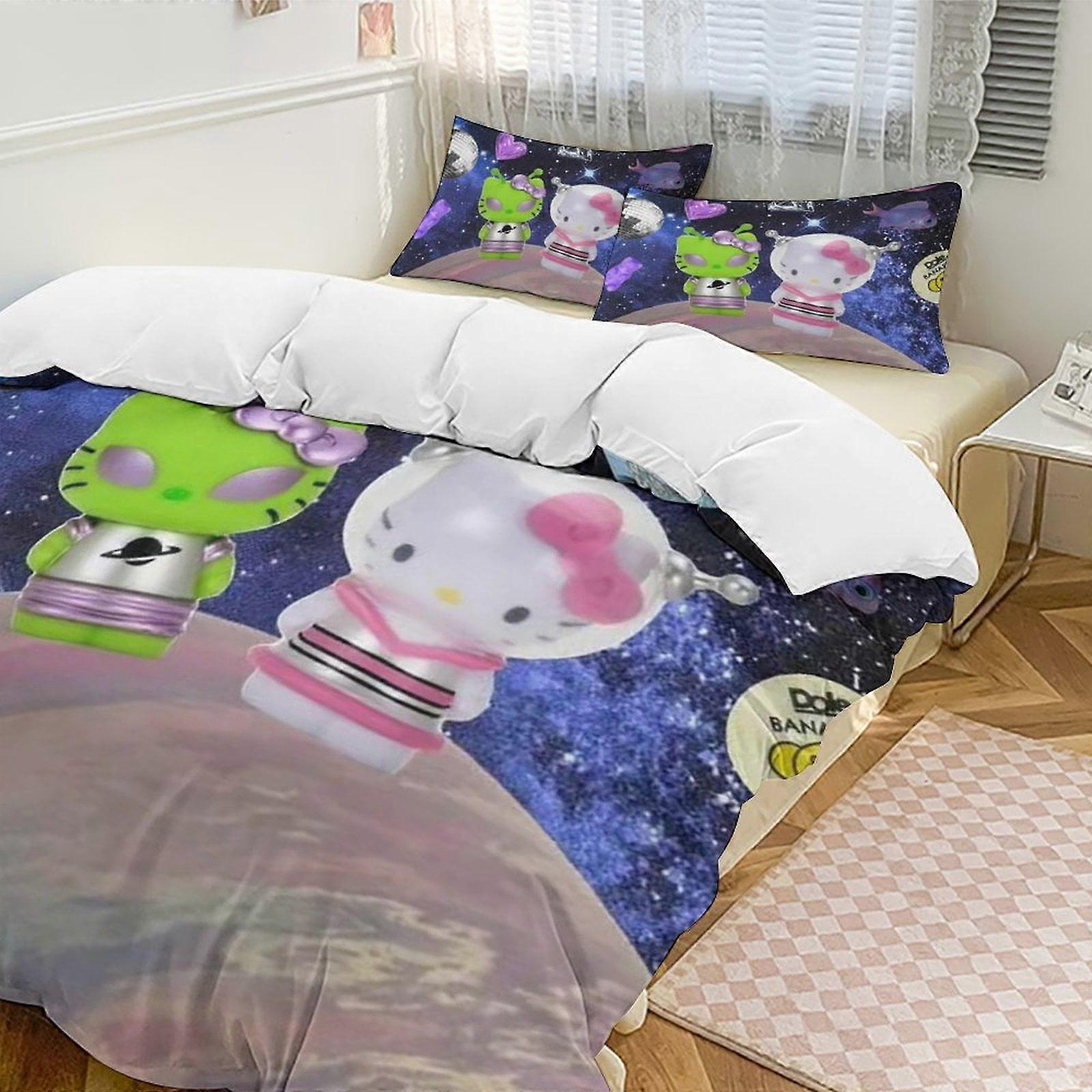 Zm409 Hello Kitty 3-Piece Twin Bed Set - Includes 1 Single Comforter And 2 Pillowcases Bedding - Fade Resistant Microfiber - Hello Kitty Lc409